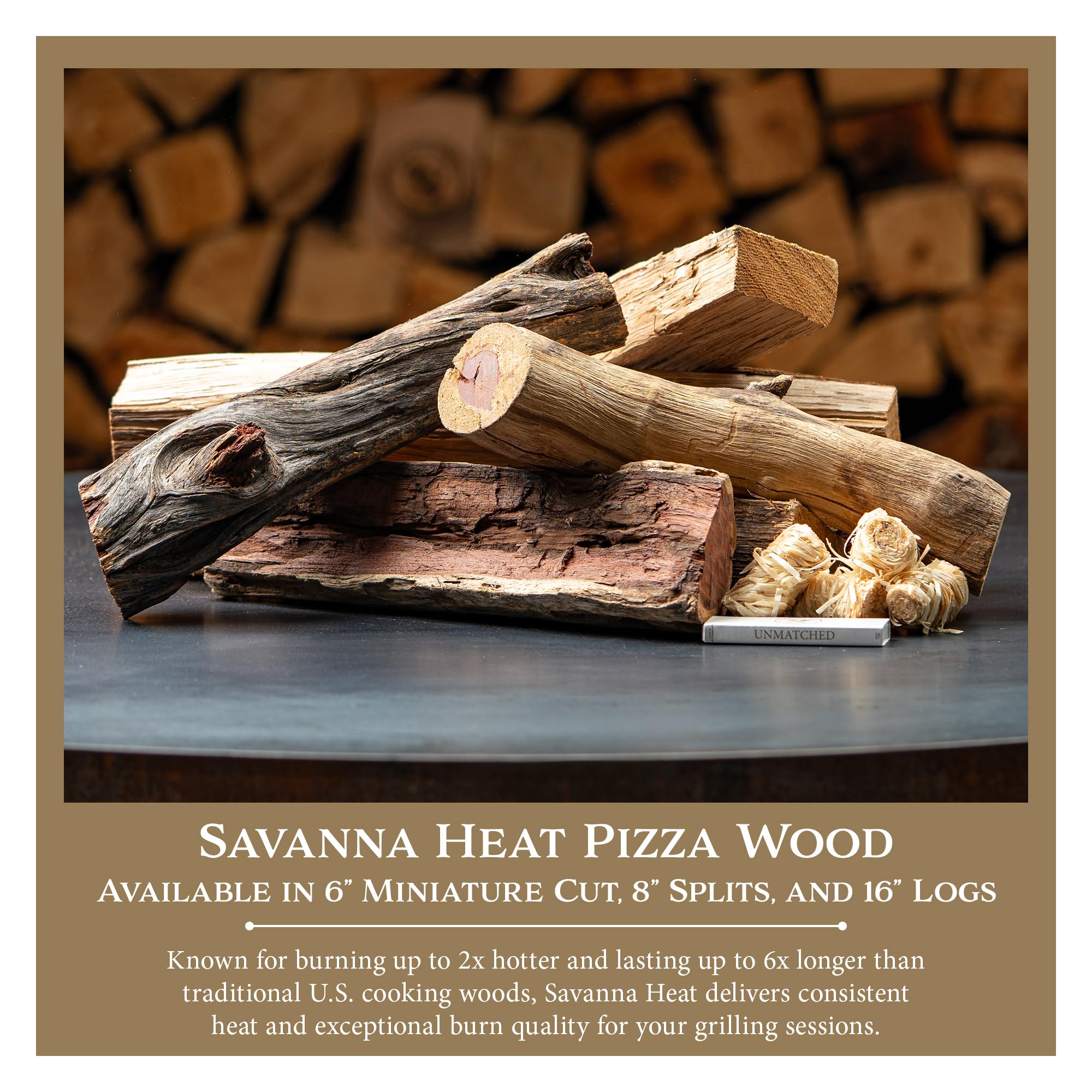 The Savanna Heat Full-Sized Pizza Wood Box contains a mix of oak and Savanna Heat wood. Use oak to start your fire, Savanna Heat as your primary heat source, and oak to char your pizza for that perfect finish. Each box weighs about 45 lbs (19″ x 13″ x 13″) and is good for making up to 30 pizzas.