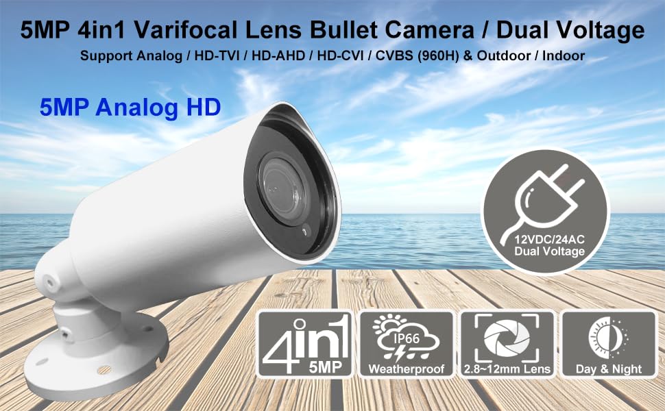 4 IN 1 (HD-TVI, HD-AHD, HD-CVI, CVBS(1000TVL) HD technology produces 5MP Analog HD Video with Sharp and Detailed Images