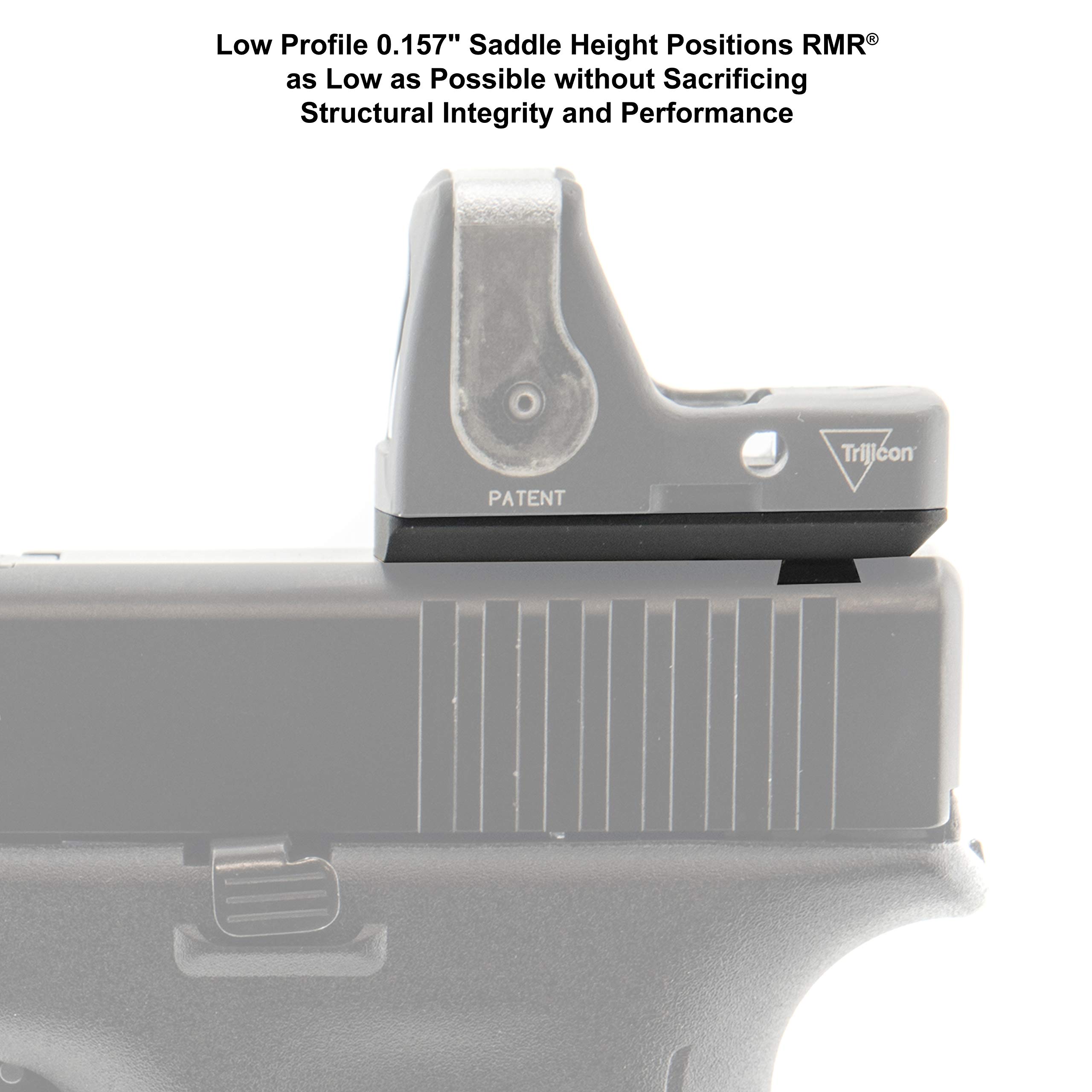 Low profile 0.157 inch saddle height positions RMR as low as possible without sacrificing structural integrity and performance