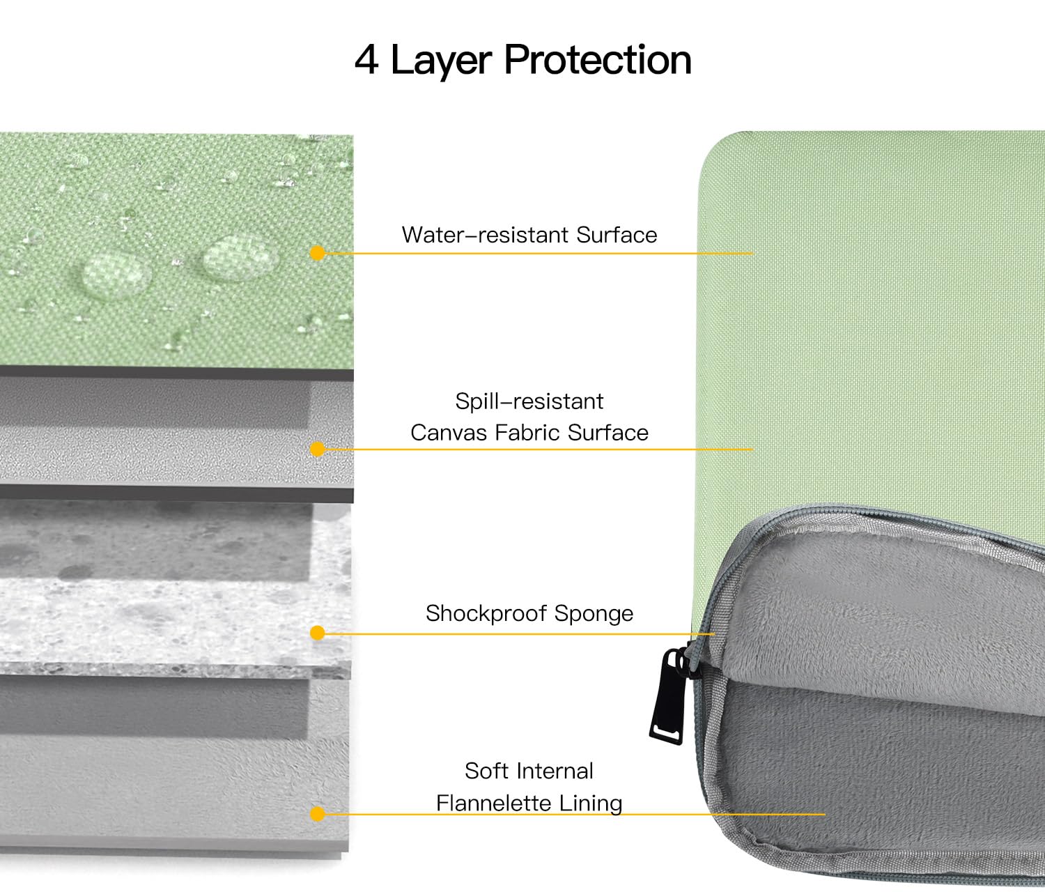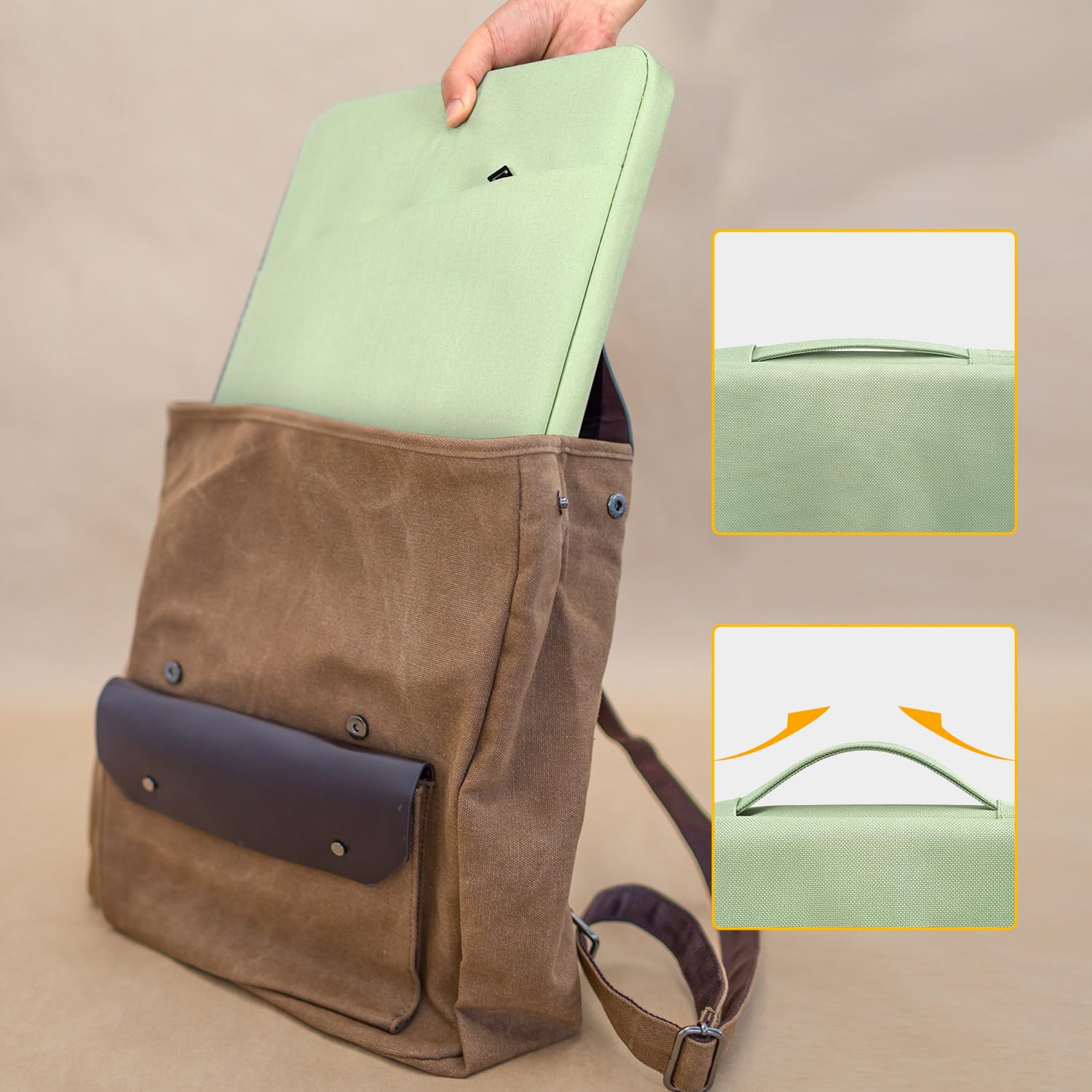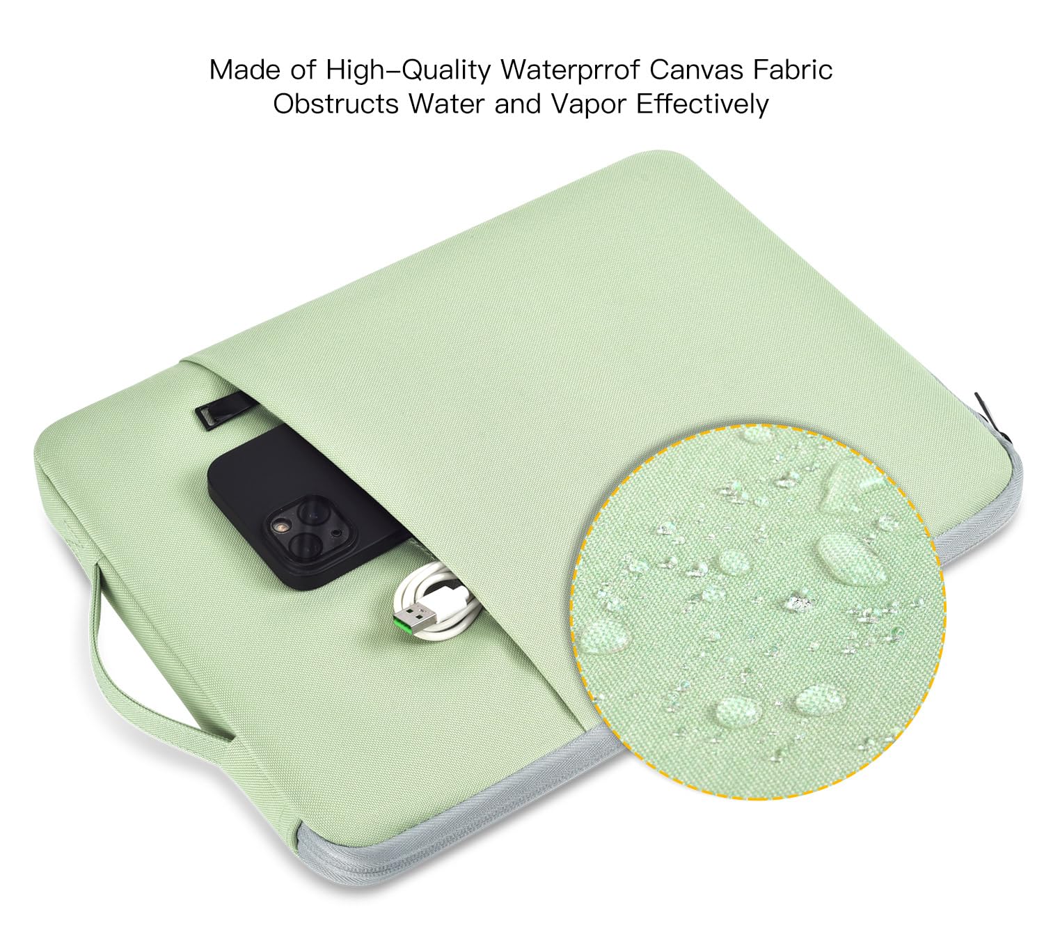 【Water Resistant &Slim Lightweight】The 15.6 inch laptop case made of high-quality waterproof Canvas fabric, which obstructs water and vapor effectively. Don't worry about your laptop and accessories splashing water or rain. Super slim and lightweight, it can easily be transported inside another bag, backpack or briefcase.