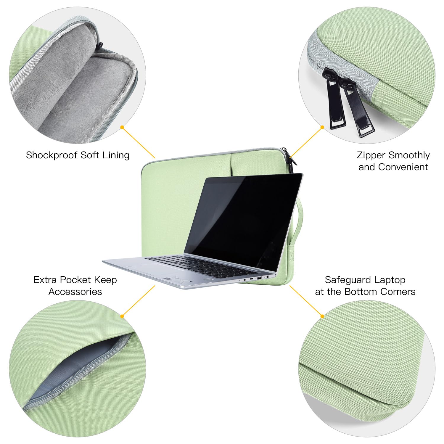 【Shockproof Soft Lining & Side Handle】Especially soft and anti-static, the 15.6 inch laptop case of soft lining can effectively absorb impacts and reduce damages caused by accidentally bumping & scratches. The side handle helps you carry easily when you want it as a handbag.