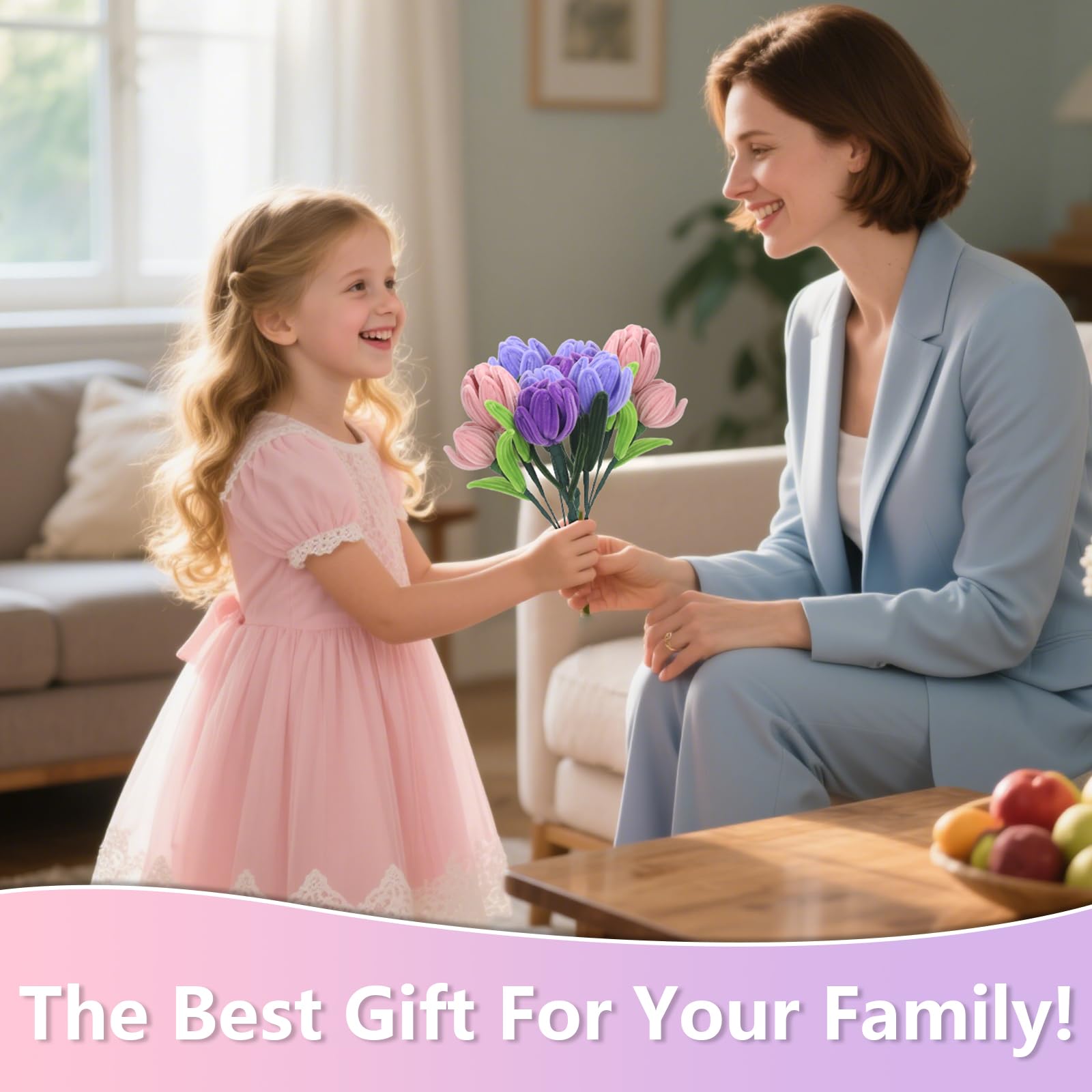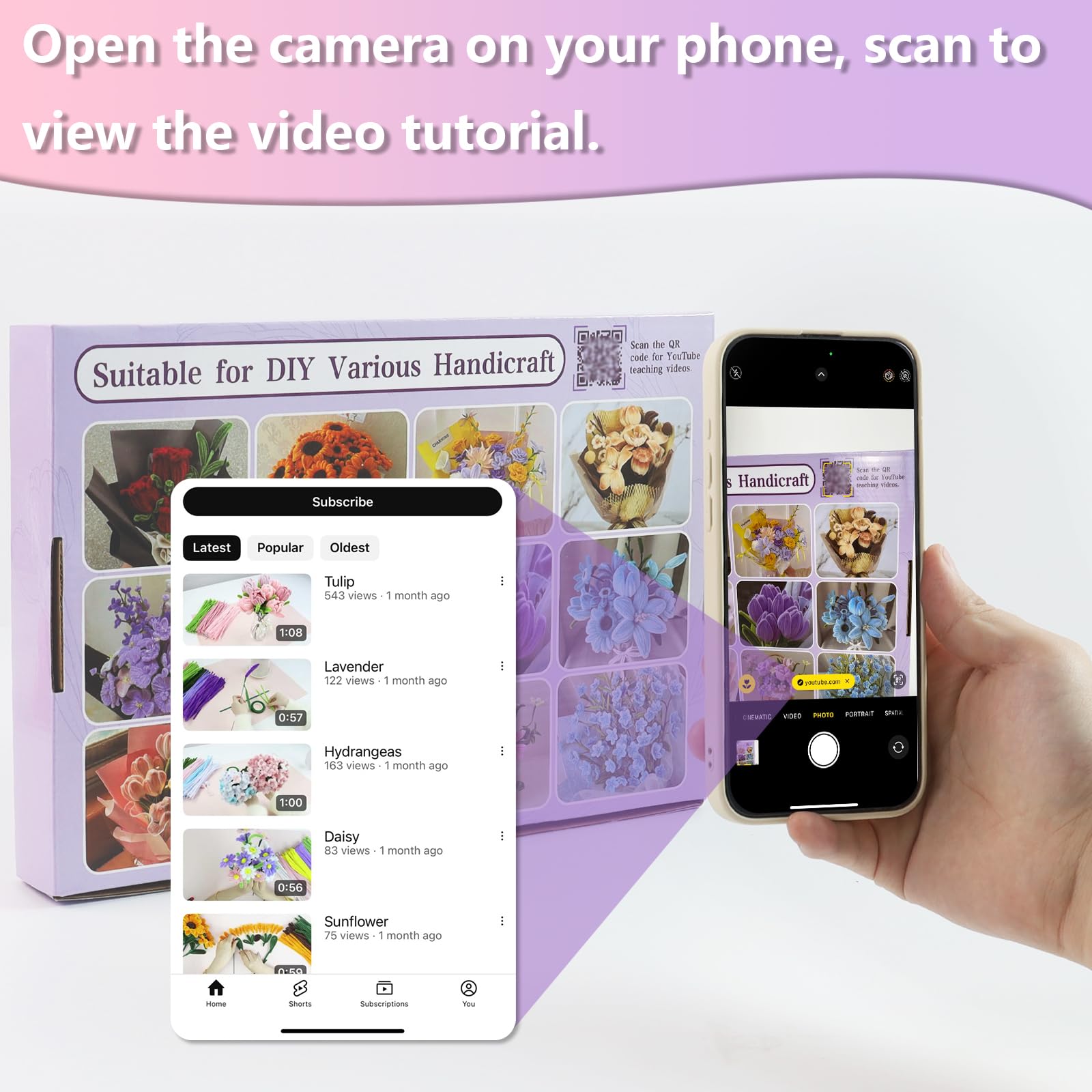 đˇăPipe Cleaners Craft KităThis product includes all crafting accessories for tulip bouquets: 200 different tone purple pipe cleaners+100 pink pipe cleaners+100 green pipe cleaners, 20 Floral wires,100 stamen,1 roll of ribbon,2 adhesive tapesand,video tutorials.