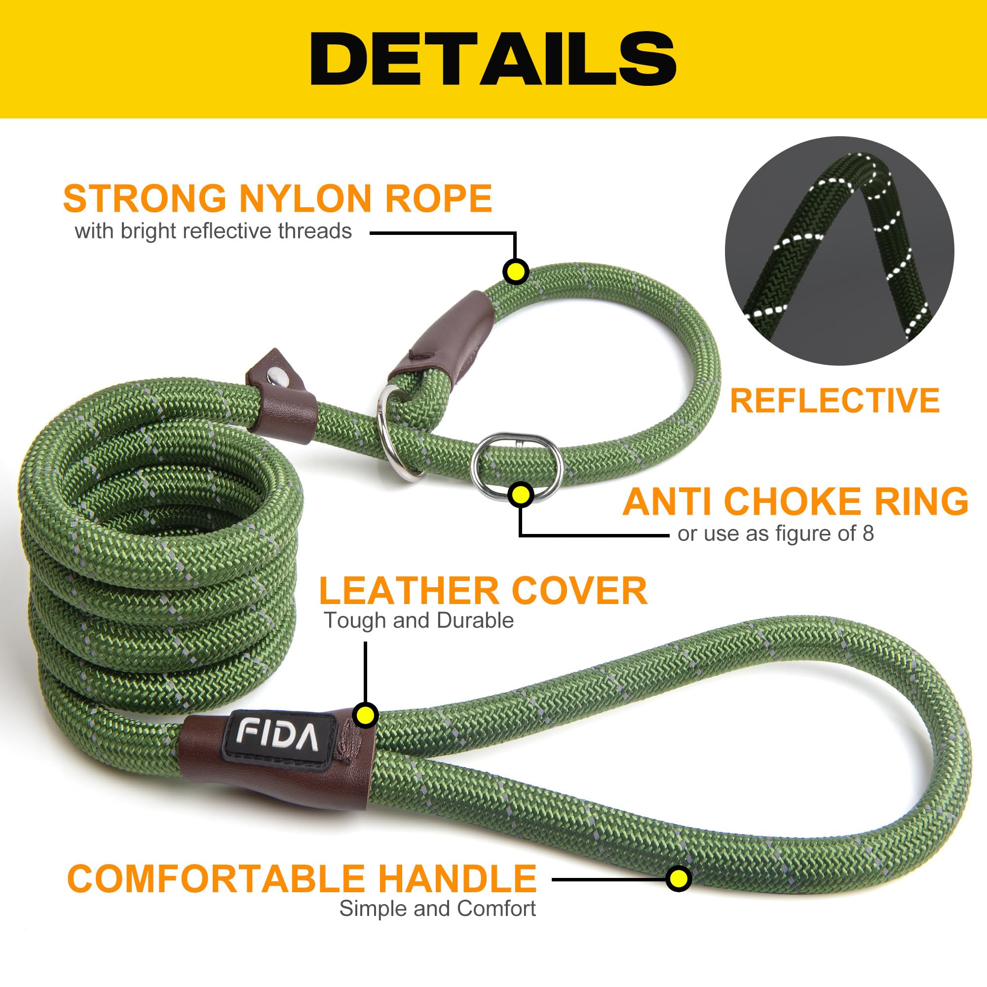 【STRONG & LIGHTWEIGHT】- This tough Premium Slip Loop Dog Leash made of high strength nylon rope, super durable metal ring, and the knots bound with leather cover. 1/2” thick rope provide maximum durability and comfortable grip.