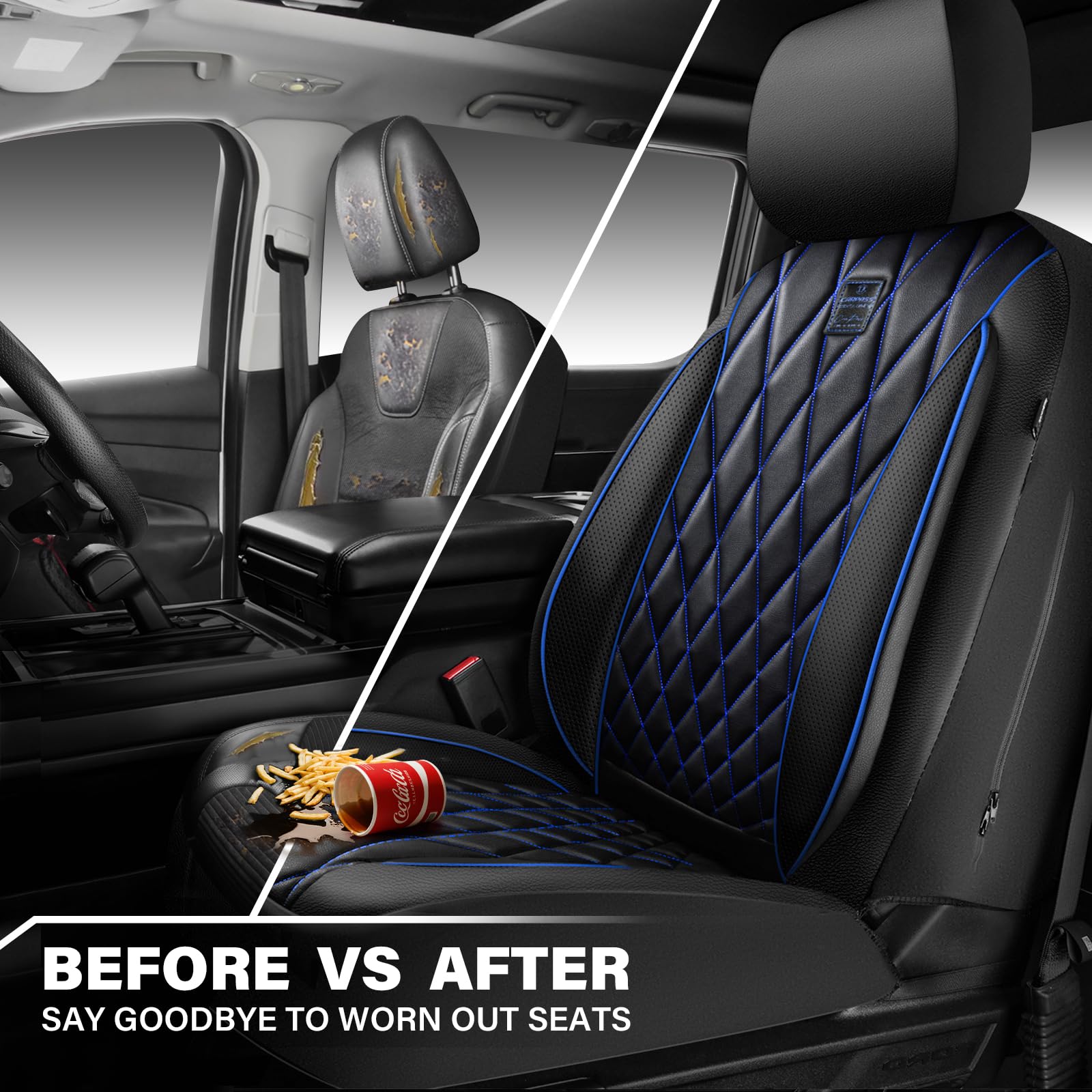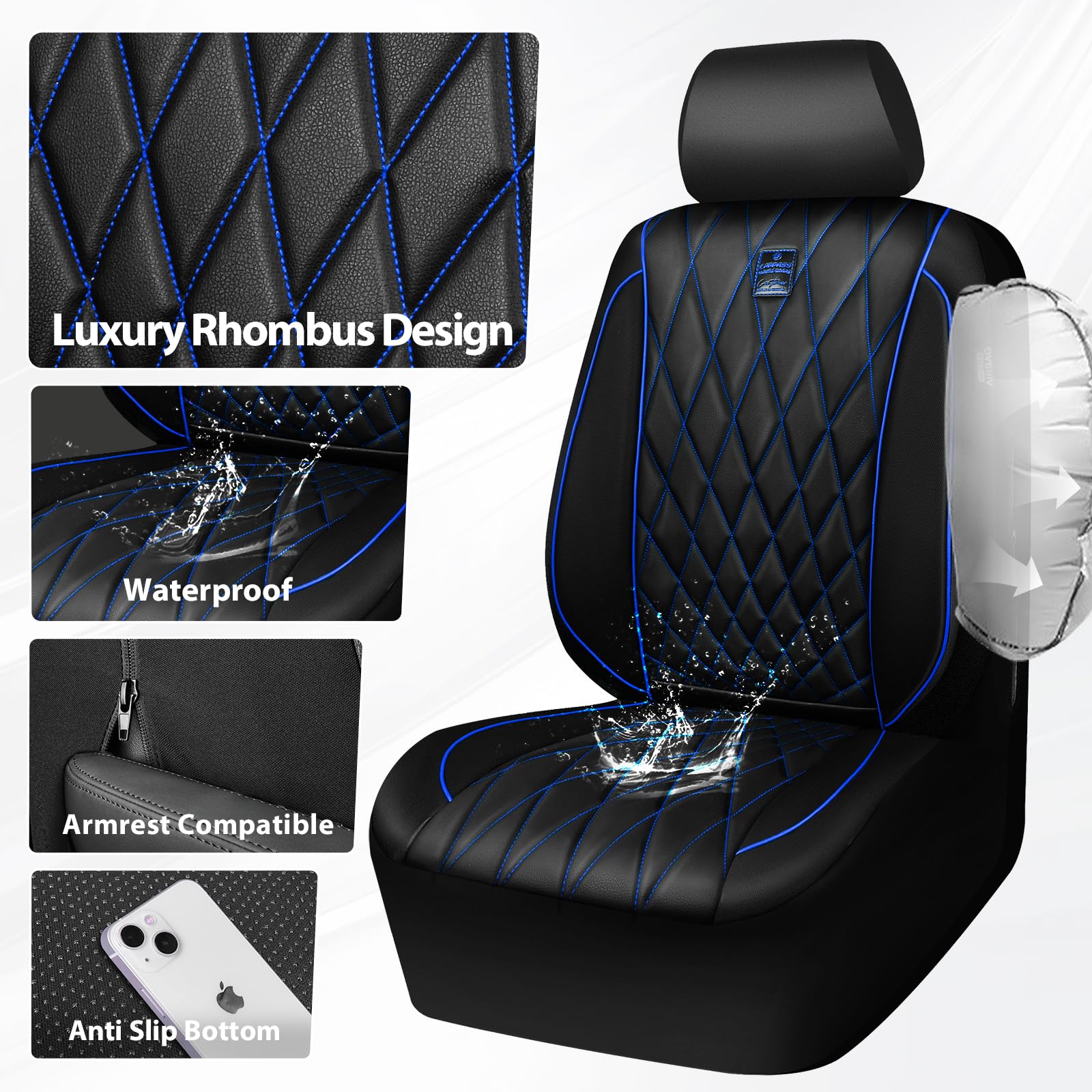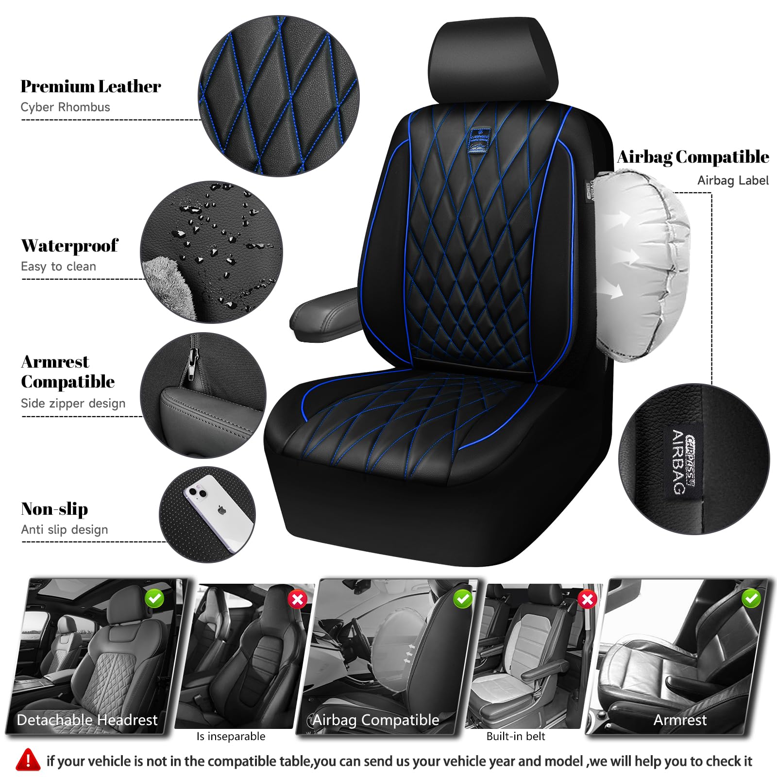 【ADVANCED LEATHER SEAT COVERS】The Seat covers are made of high quality leather, providing full protection for your car seats. Waterproof, breathable and easy to clean. Protect your car seat covers from dust, scratches and other possible damages. Outstanding diamond stitching design adds luxury and fashion to your car's interior.