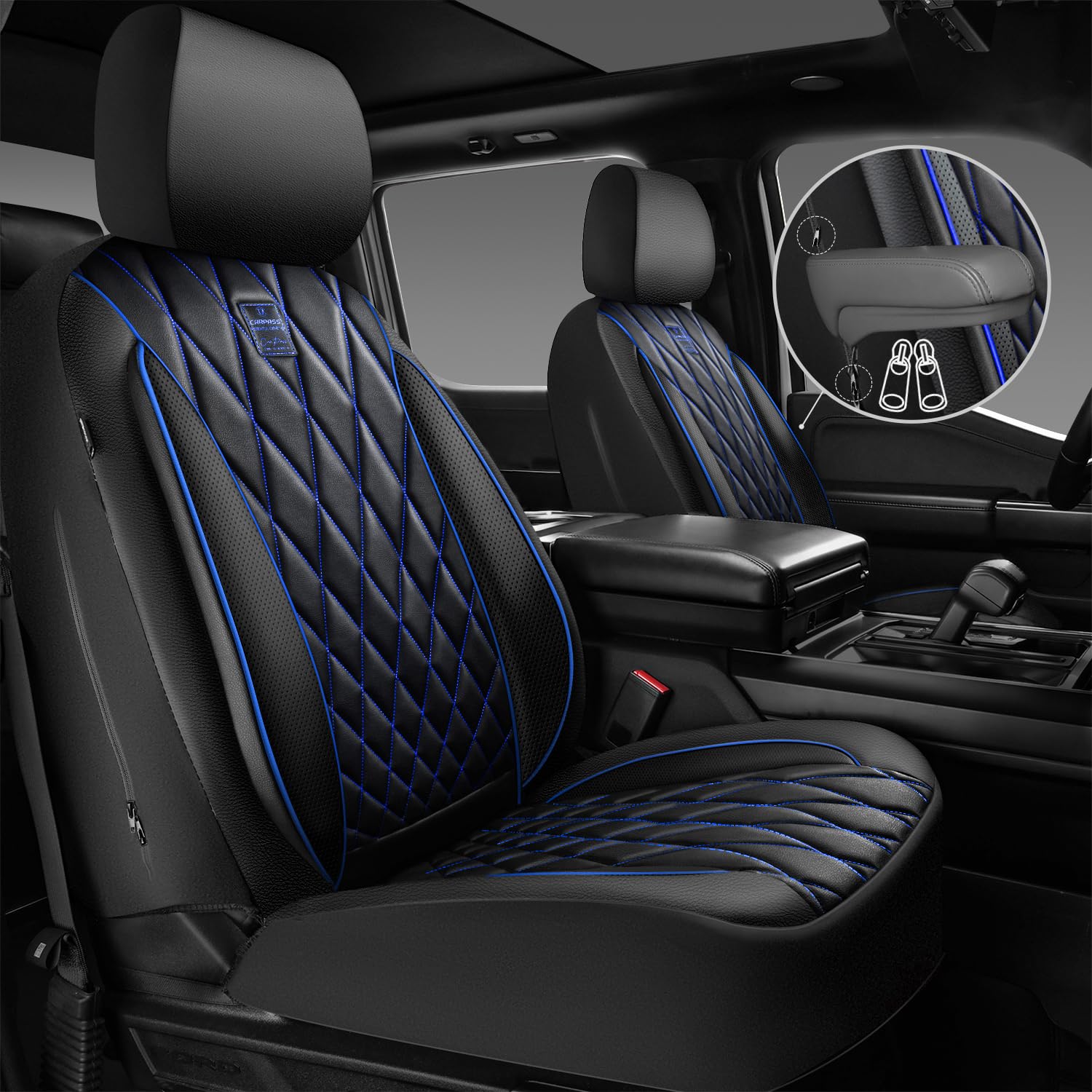 【UNIVERSAL FIT & EASY INSTALLATION】The seat covers are compatible with most vehicles, sedan car SUV pick-up and trucks. Compatible with vehicles with front seats with side armrest.Easy to install, no tools required. The installation instruction is included in the package. We recommend you read the instruction manual step-by-step for guidance. Due to packaging, the product unfolds with wrinkles, the seat cover will spring back and recover a week after installation.