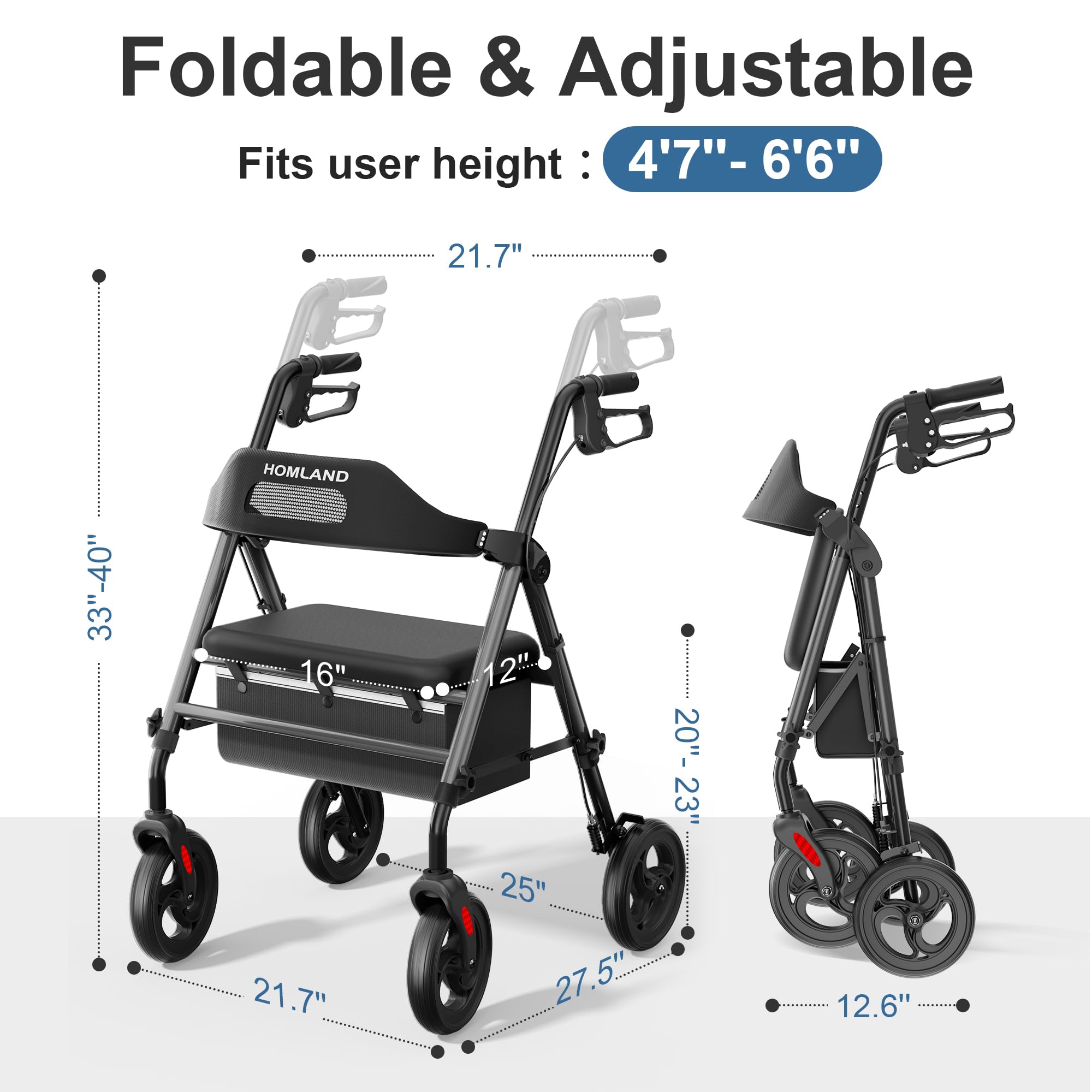 FOLDABLE & CONVENIENT: At just 20.4 pounds, this 4 wheel walker combines strength with portability. Its quick-fold design allows for easy transport and storage, fitting perfectly into your lifestyle.
