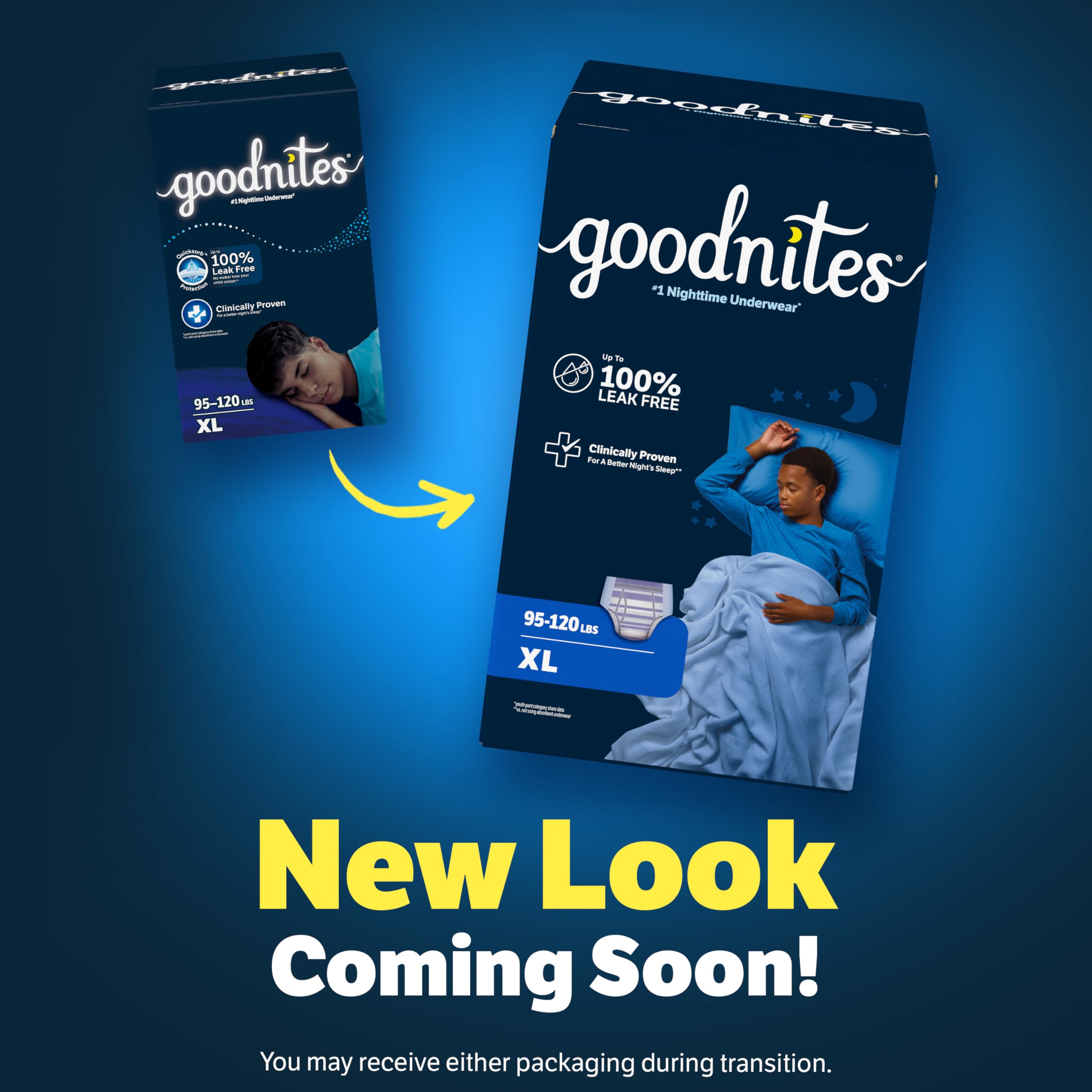 Goodnites Boys' Nighttime Bedwetting Underwear: 63 (3 packs of 21) overnight underwear for boys, size extra large; fits children 95-120 lbs, packaging may vary