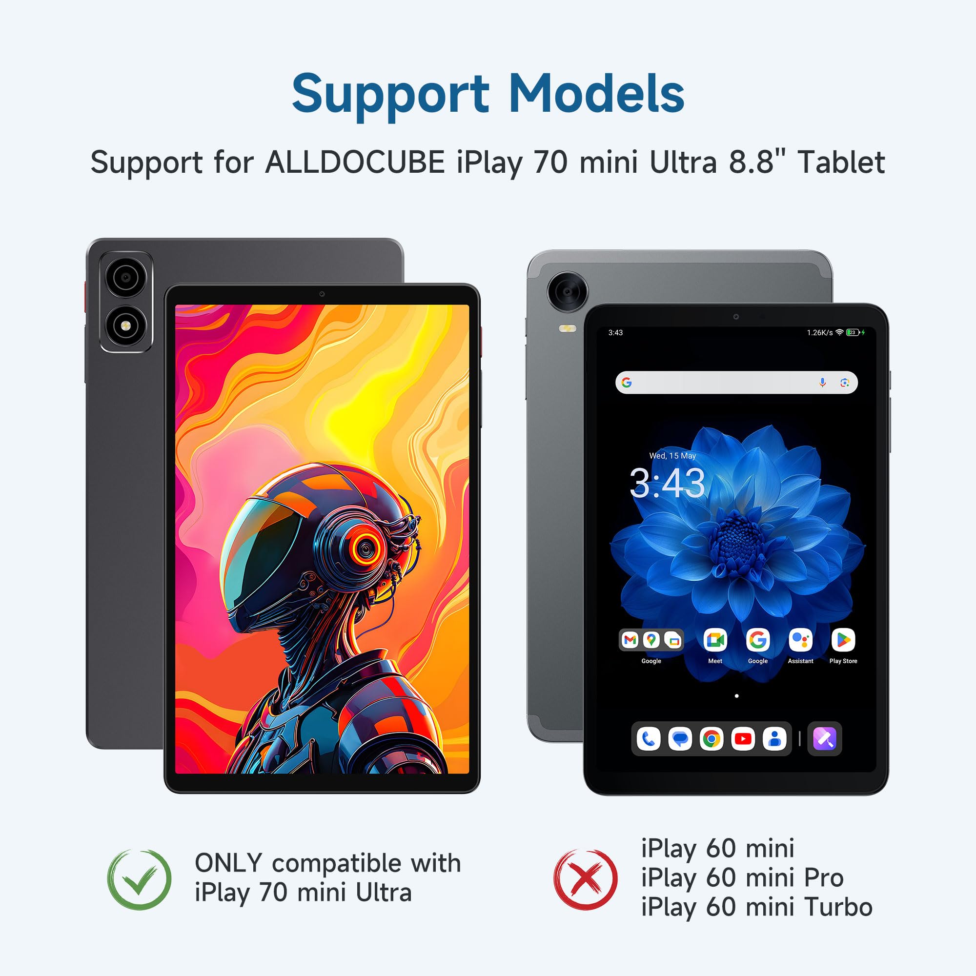 【Easy to Clean】Made from easy-to-clean materials, this protective case can be effortlessly maintained. Simply wipe the surface with a damp cloth or cleaning agent to remove stains and keep your case looking clean and tidy. (Note: This case is only suitable for iPlay 70 mini Ultra tablet, other products are not adapted.)