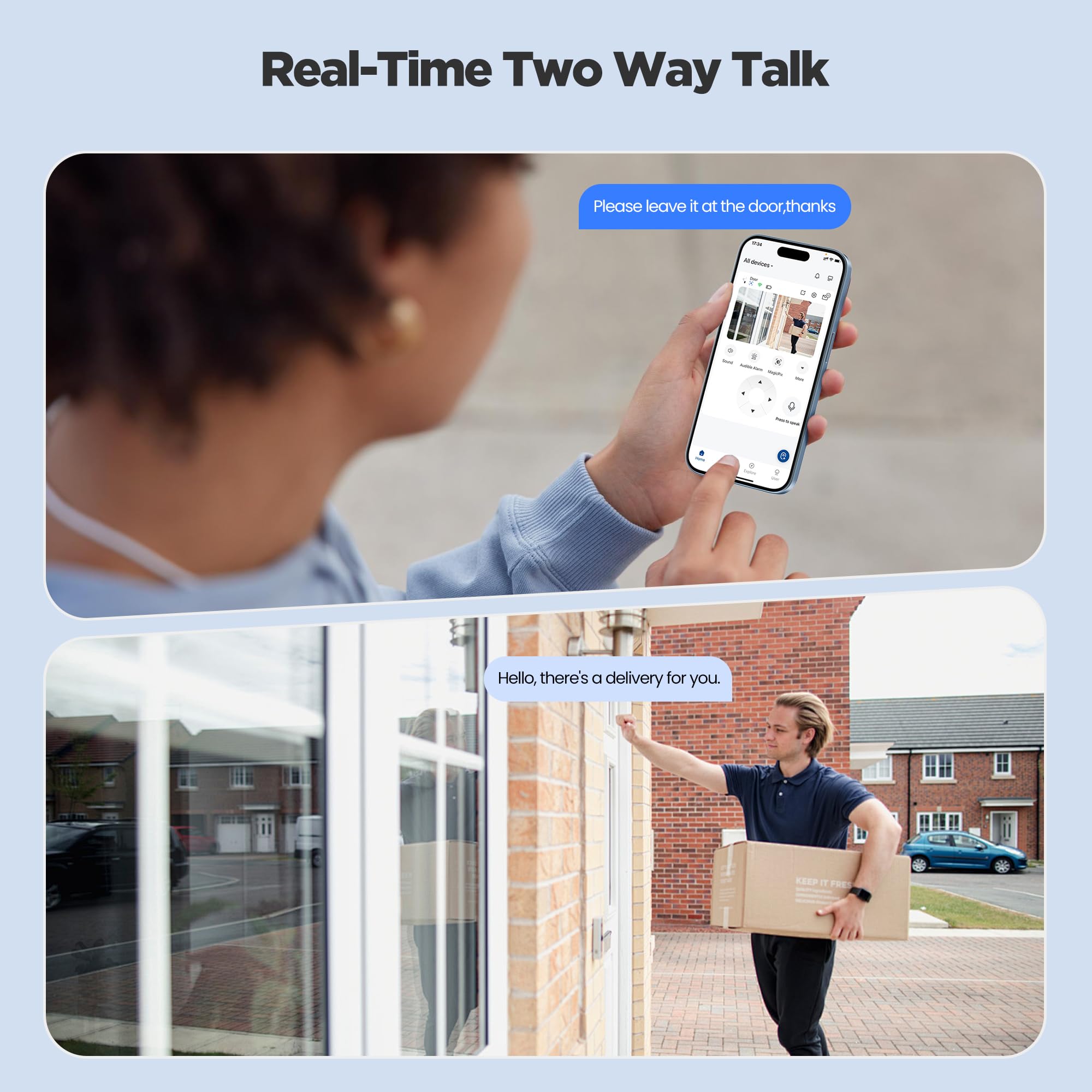 【Alarm Light & Sound】You can set the wireless camera outdoor to emit a harsh alarm sound to drive away intruders or unwanted small animals. The outdoor camera wireless can automatically emit a sound when triggering a motion alarm. You can also say what you want by manually pressing the microphone icon in the app. While letting the camera automatically sound an alarm, please be aware if it will affect your neighbors. Your home security system.
