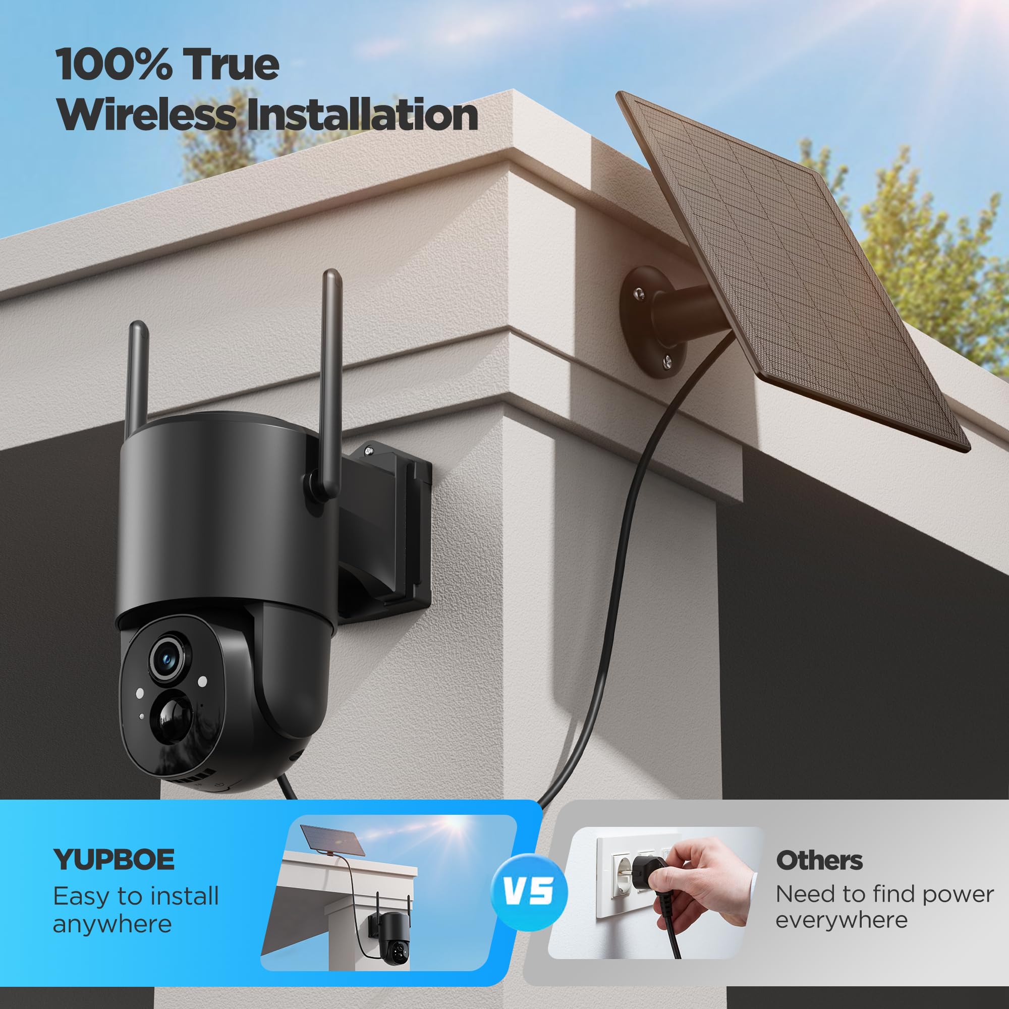 【Solar Powered Wireless Battery】Our solar cameras for home security eliminates the need for cables, making it easy to install and use. This wireless rechargeable battery camera can operate continuously as long as there is sunlight to provide the necessary electric power. Enjoy uninterrupted home security with our surveillance security cameras.
