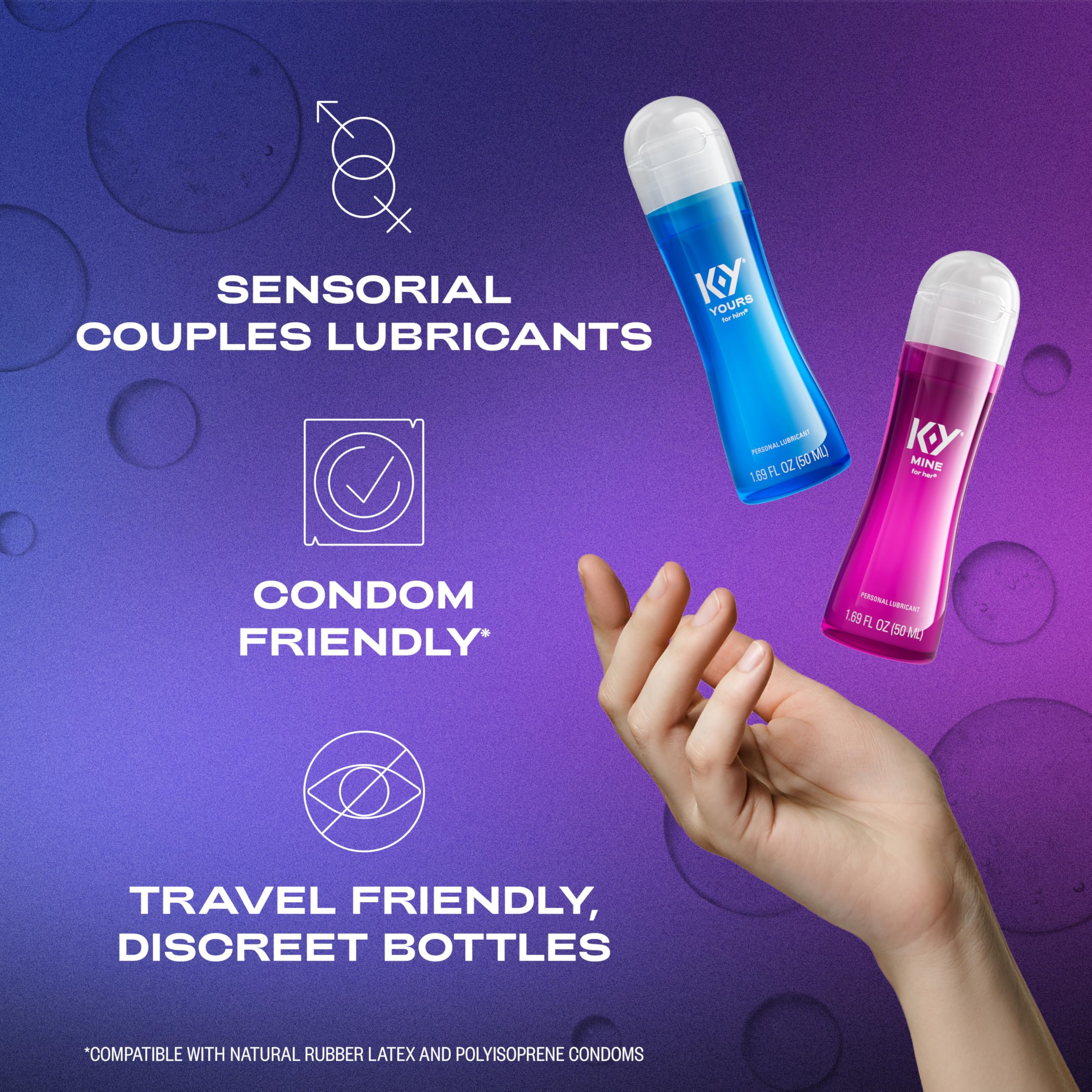 CONDOM COMPATIBLE: K-Y Yours + Mine are compatible with natural rubber latex and polyisoprene condoms; for more condom-friendly lubricants¹, check out other K-Y lubricants such as K-Y Intense Gel, K-Y Warming Jelly, & K-Y Silicone Lube