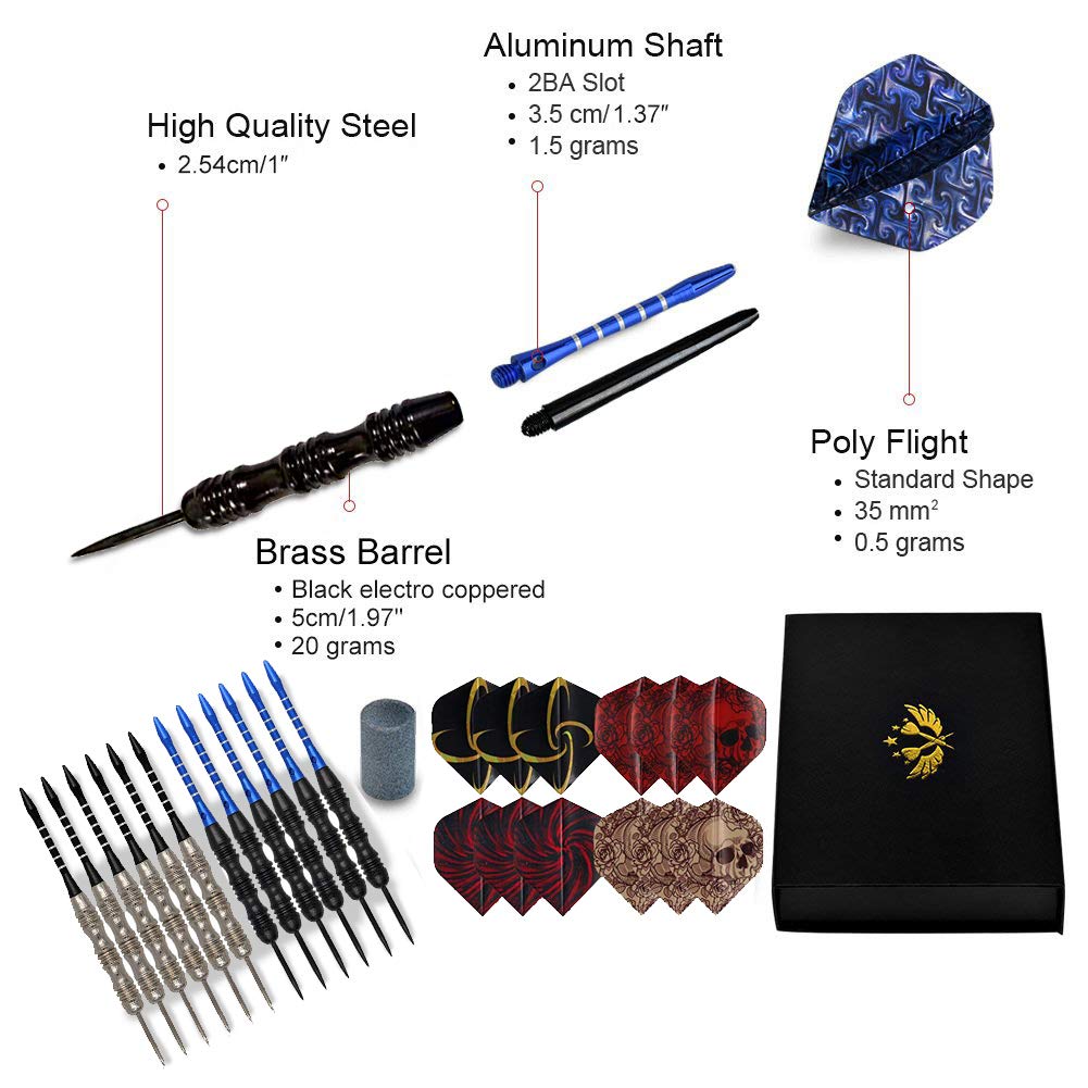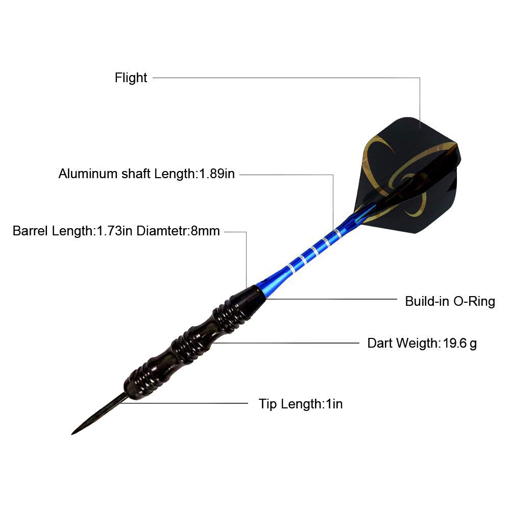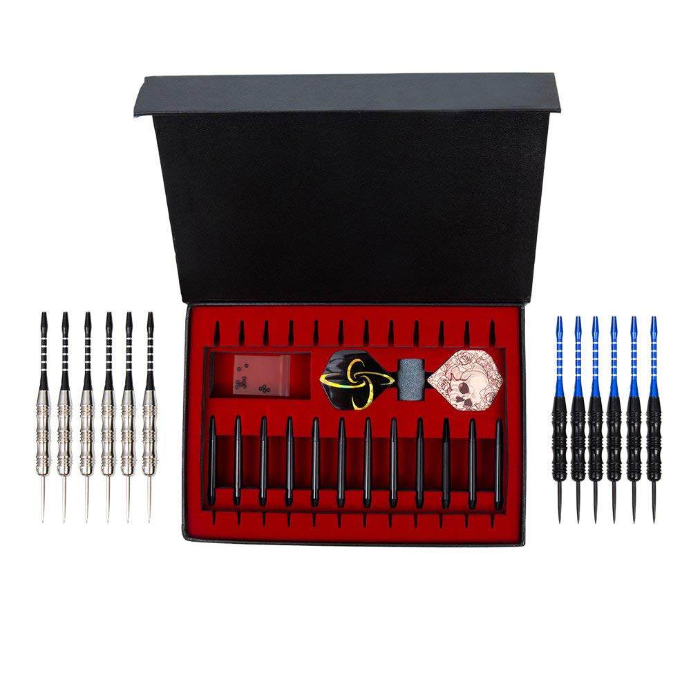 Include 12 high quality darts you have enough for practice and enough to host your next get together.Besides, you will get extra 12pcs plastic shafts for spare and 4 Style Flights (24pcs) + 12 Anti-Loosening O Ring + 1 Darts Sharpener + 1 Sturdy Storage Case.