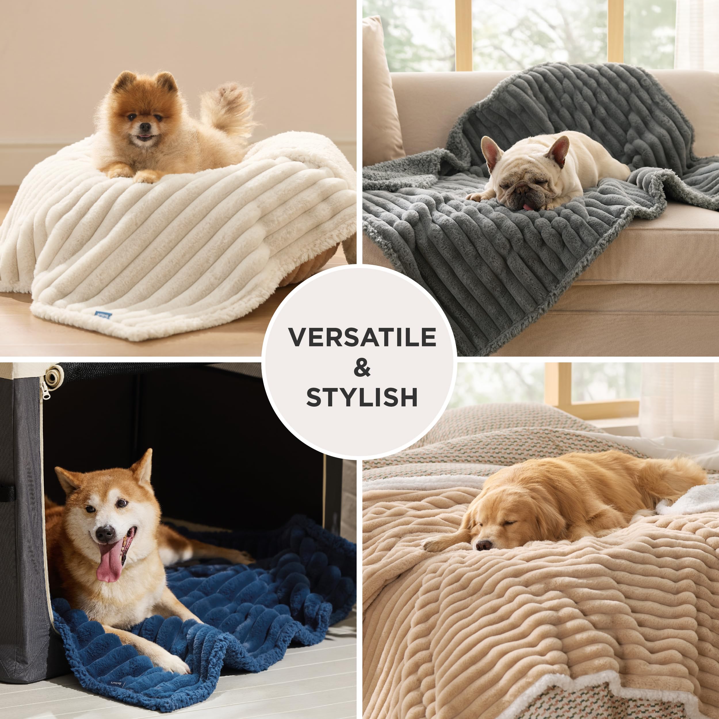 Double-Sided Comfort:Our pet blanket doesn’t just feature one cozy side, but dual layers of coziness. Crafted with reversible options, the blanket features two unique textures and colors. While its neat and tight edge stitching ensures the pet blanket’s long-lasting durability and strength. Note: sherpa and corduroy are not waterproof.