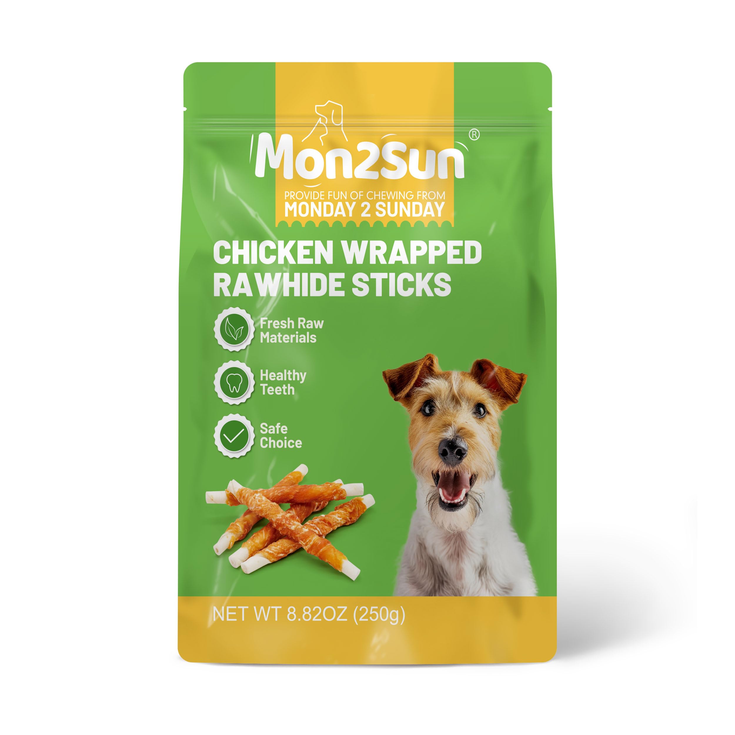 Chicken dog rawhides provide fun chewing enjoyments for your dogs and promote dogs' teeth healthy. Have less plaque and tartar.