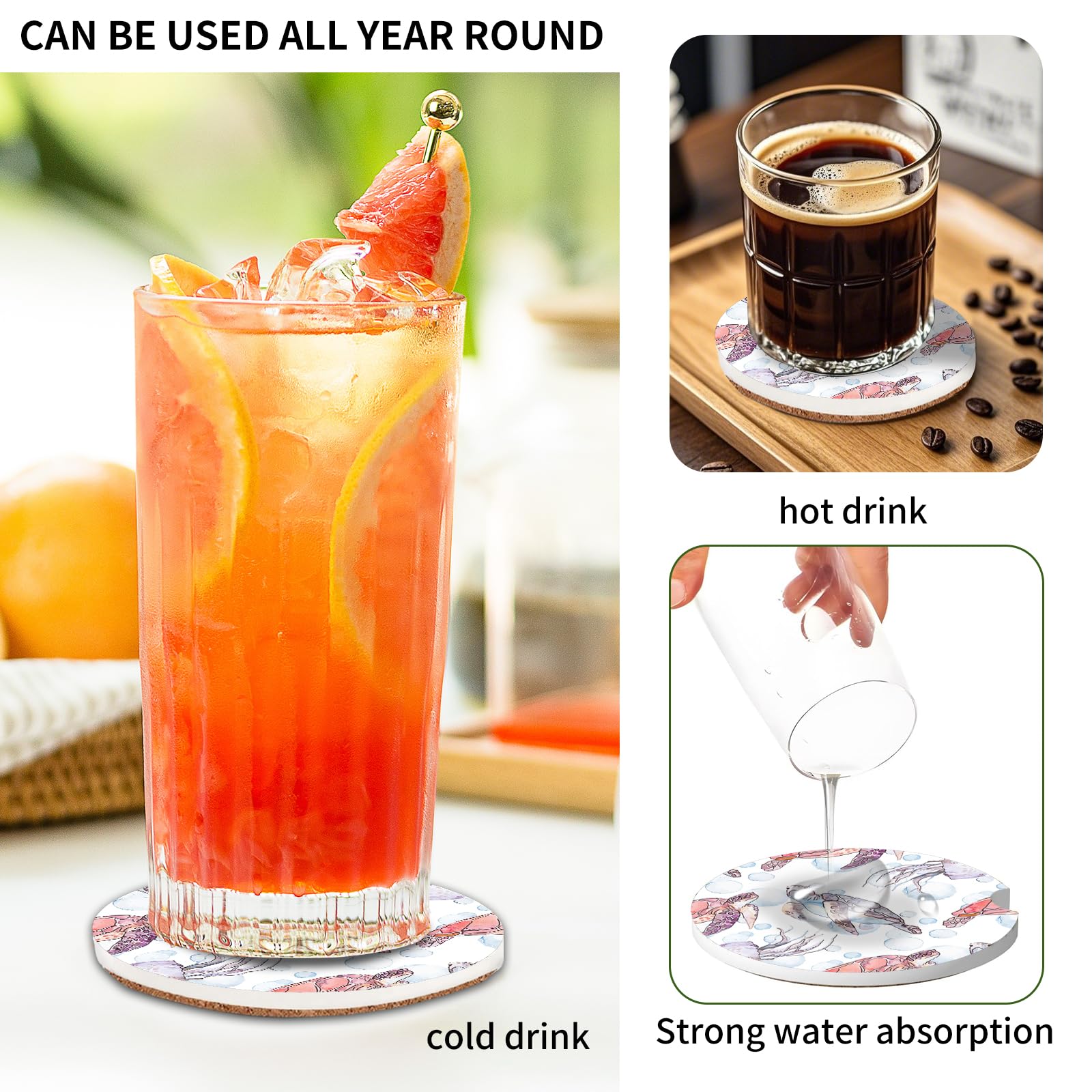 The coasters made from absorbent ceramic stone that can easily absorb the liquid drops outside the cup, keep your car cup holder dry and clean.