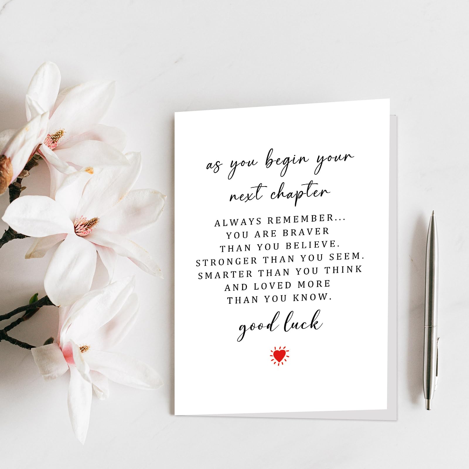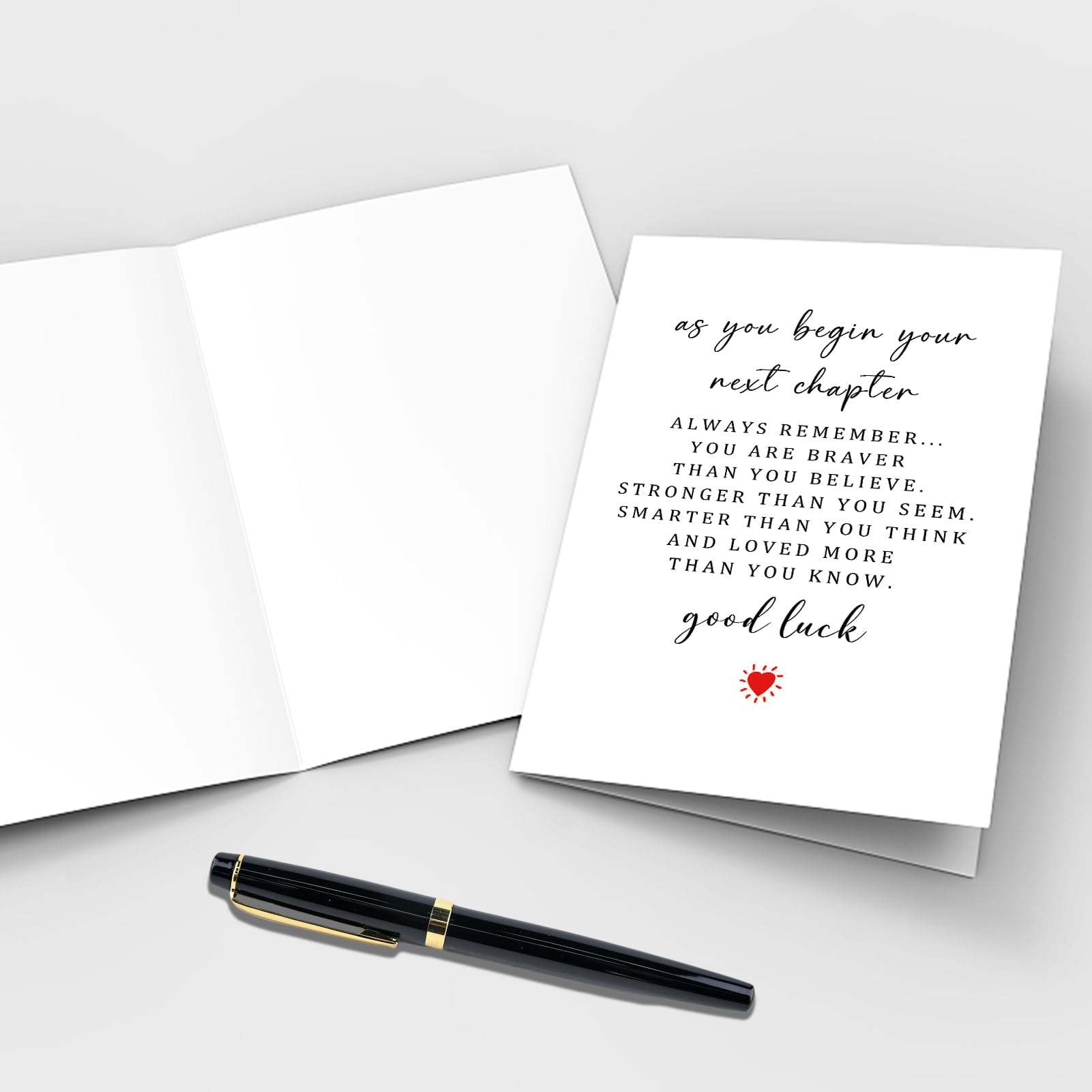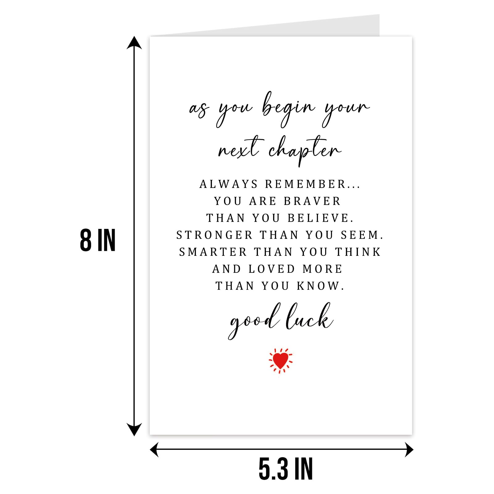 This Qiliji New Chapter Card is the perfect way to celebrate and wish good luck to someone starting a new journey in their life. The card is suitable for various occasions such as job promotions, higher education, graduation, new job, moving, passing exams, or overcoming tough times. It is printed on high-quality 300gsm card stock with a matte finish, measuring 8 x 5.3 inches when folded, and includes a coordinating envelope. The blank interior allows you to write a personalized message for that special person. This minimalist card is a thoughtful gift for anyone, whether it's for a son, daughter, grandchild, sibling, friend, or coworker. The card is sold individually and is not part of an assortment. Start a new chapter with Qiliji's Good Luck Card.