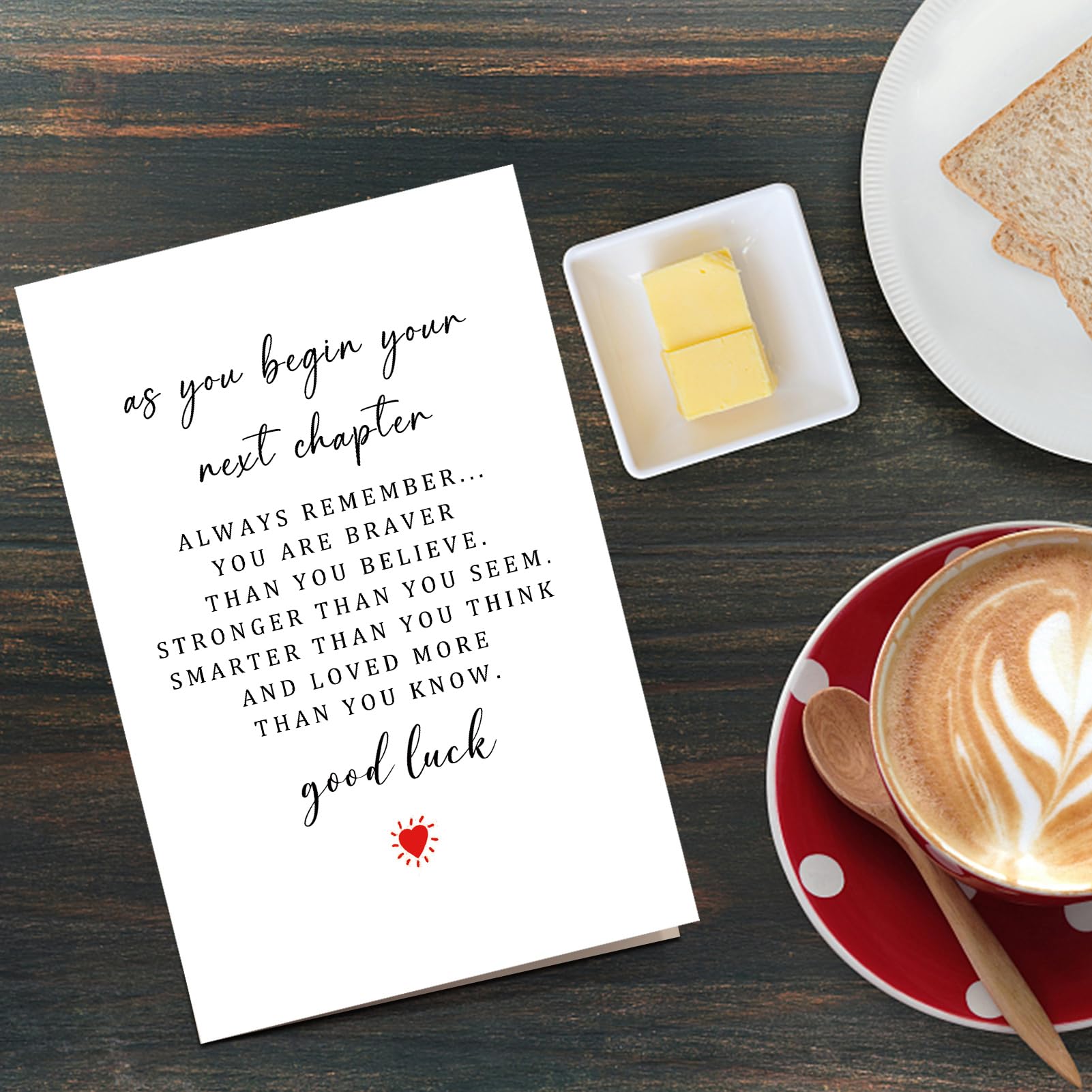 This is a great card to send to someone leaving a job, promotion, getting higher education, graduation, new job, moving, passing an exam, going through tough time, beginning a new chapter in their life, and wishing them good luck.