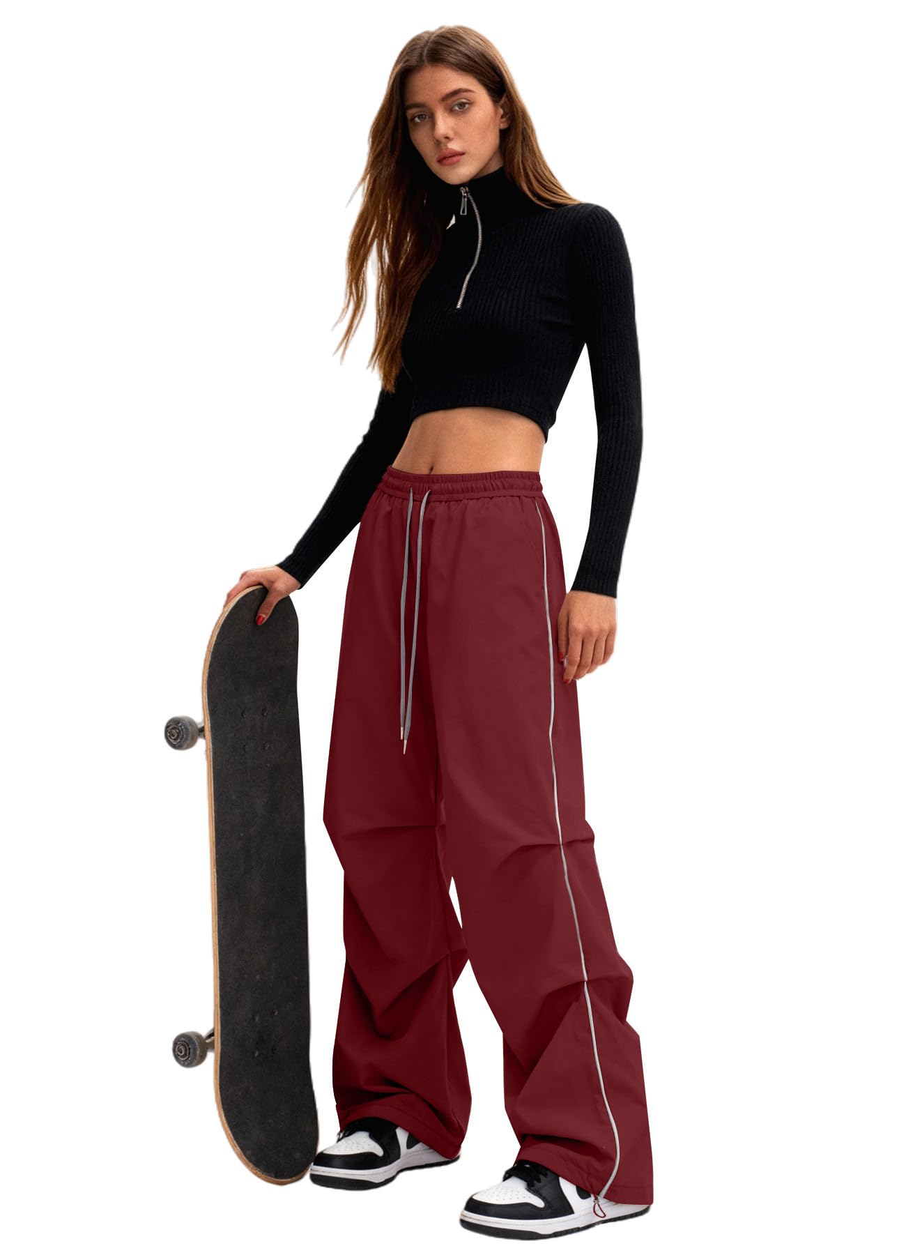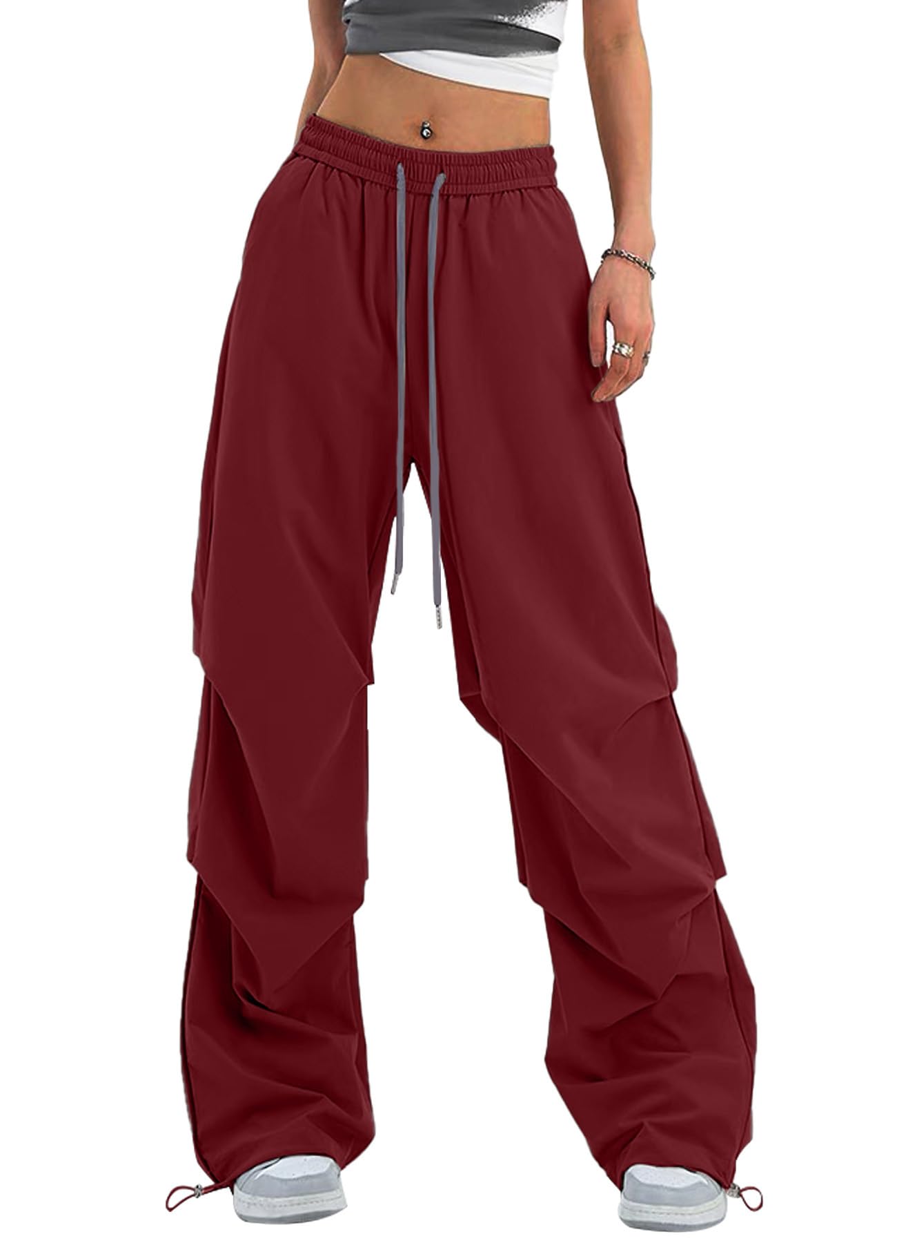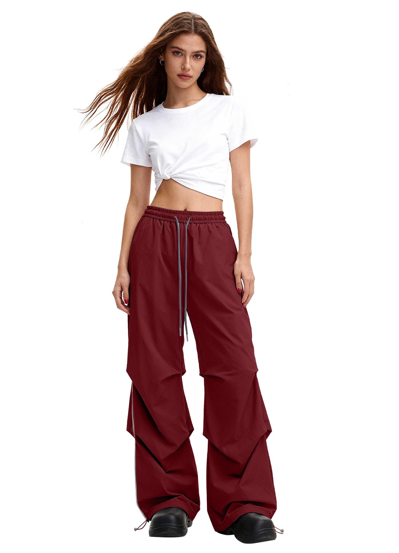High Waist Y2K Baggy Parachute Pants: Designed with a high waist and a Y2K-inspired baggy parachute silhouette, these wide leg pants create a balanced, relaxed fit that complements different body types and delivers a modern streetwear look.