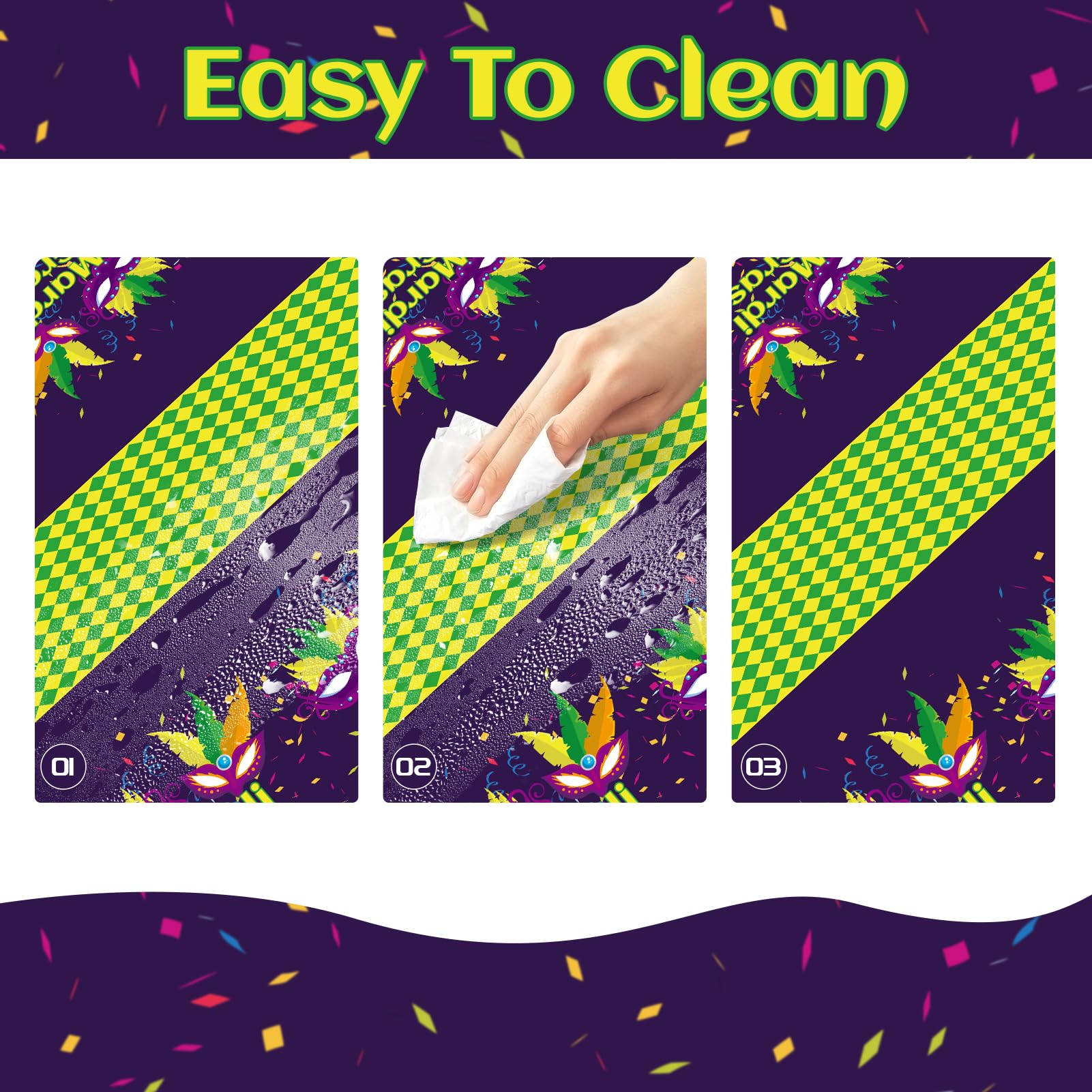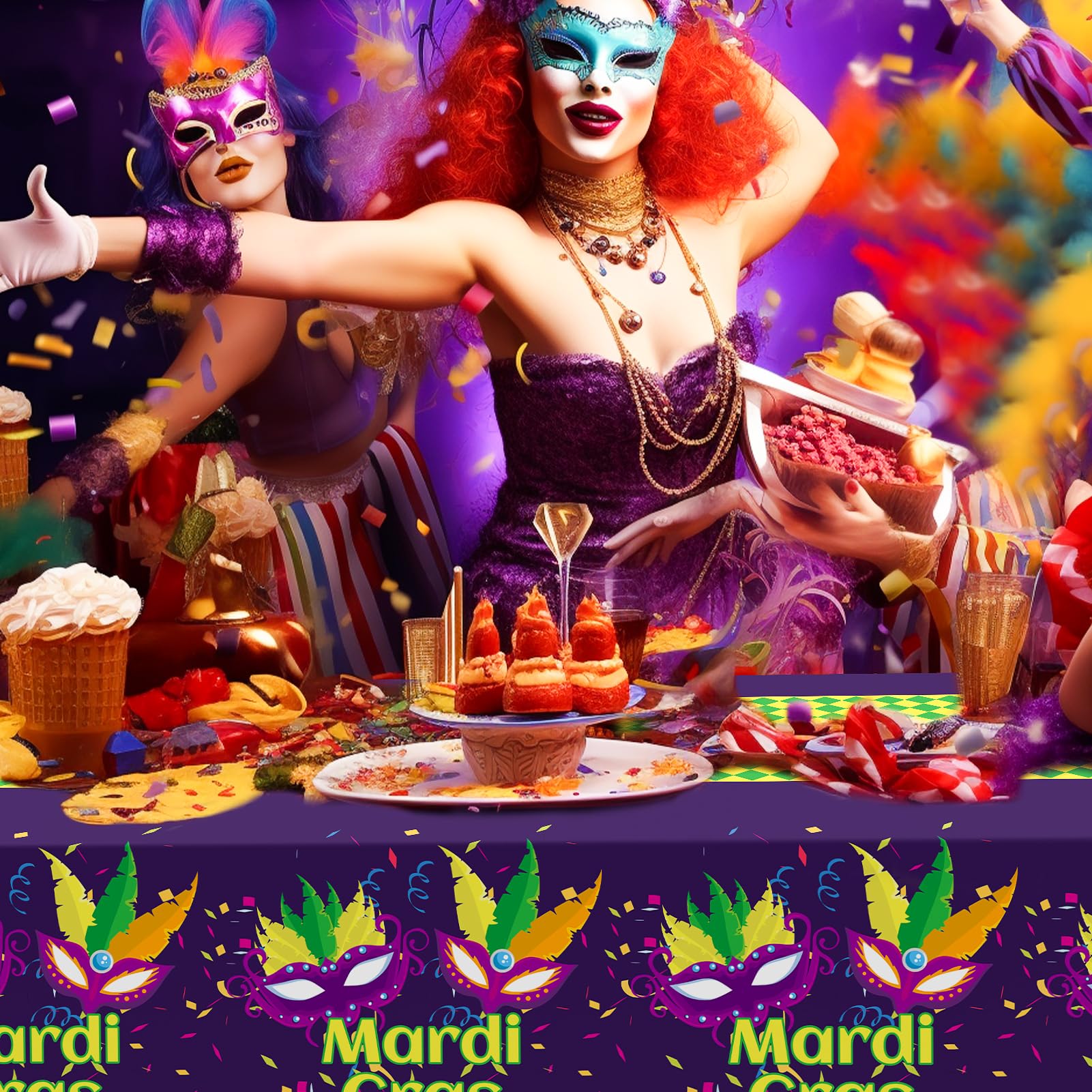 Quick and Easy Clean-Up: The Mardi Gras themed tablecloth can protect your tables from spills and messes! Roll it up and toss away can help you save more time, no need to worry about cleaning work after party. Enjoy the happy time during party! Great for Mardi Gras birthday party supplies, which is an perfect choice for creating wonderful party atmosphere