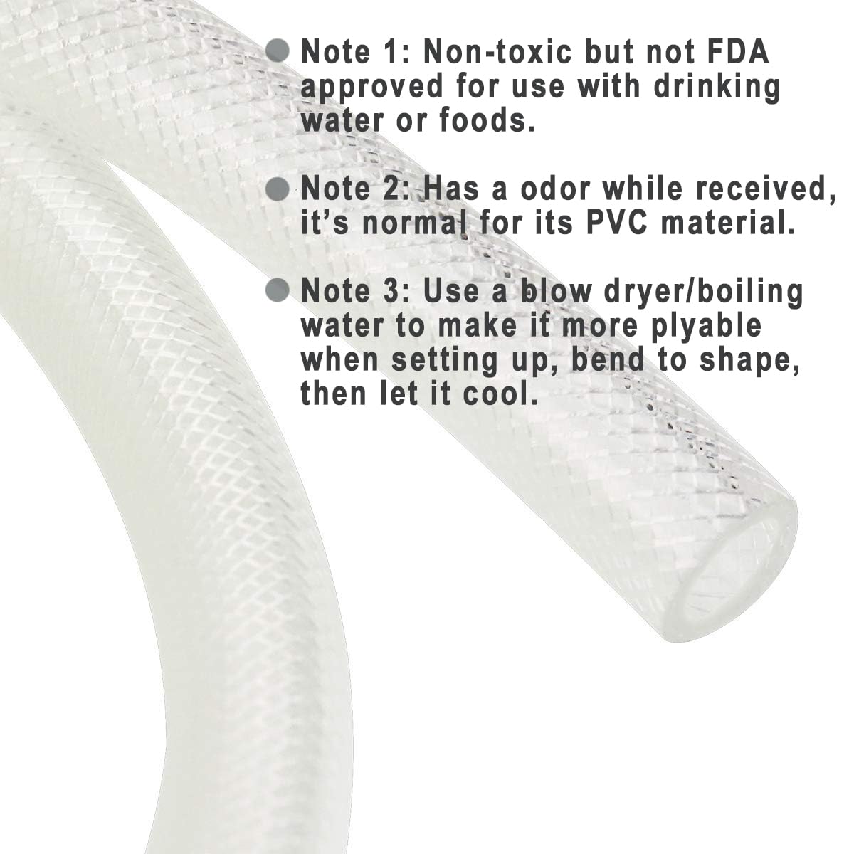 Durable Use: The clear braided vinyl tubing walls are thick and flexible enough to prevent kinks and is resistant to UV light and chemicals, making it ideal for working in confined areas