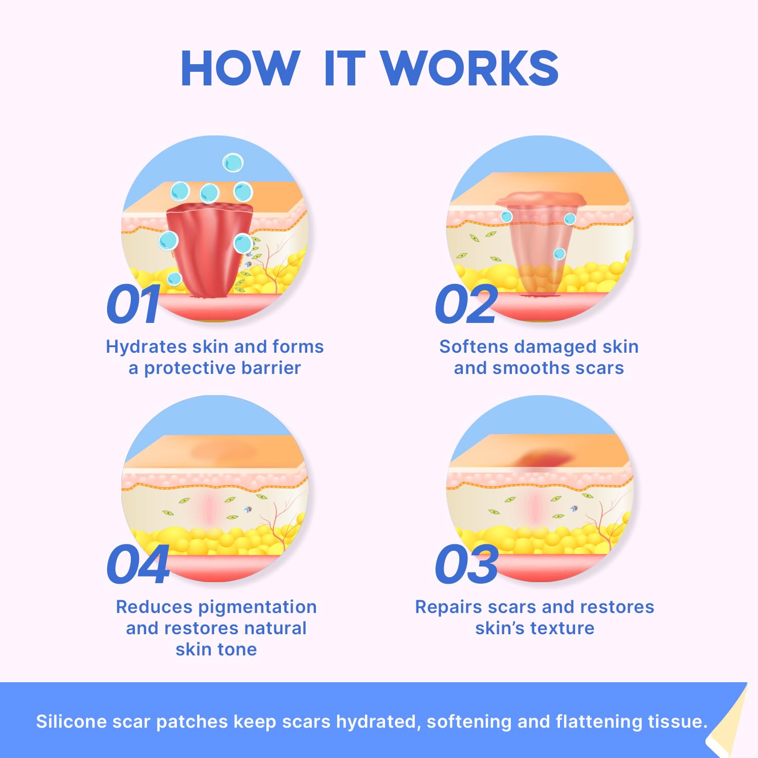 100% MEDICAL-GRADE SILICONE: Dermatologist-recommended formula with medical-grade silicone, safe for sensitive skin and children. Forms a protective barrier to lock in moisture, reduce redness, and prevent hypertrophic scars from surgeries, burns, or C-sections.