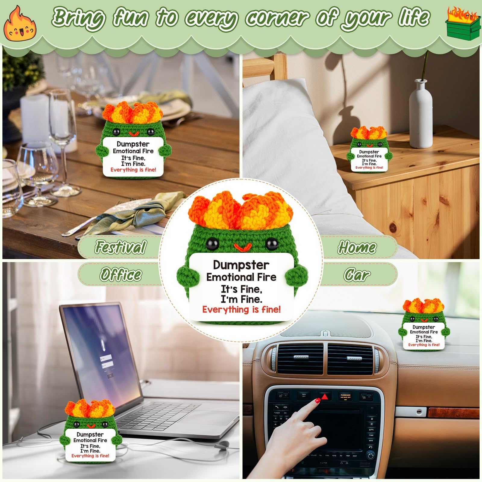 Stress Relief Crochet Dumpster Emotional Fire: this interactive crocheted fire dumpster can be squeezed or ”fluffed up” to relief stress; Quirky funny appearance giving a reminder that things may be chaotic, but it’s okay to laugh and take it easy. Supporting us going through hard times