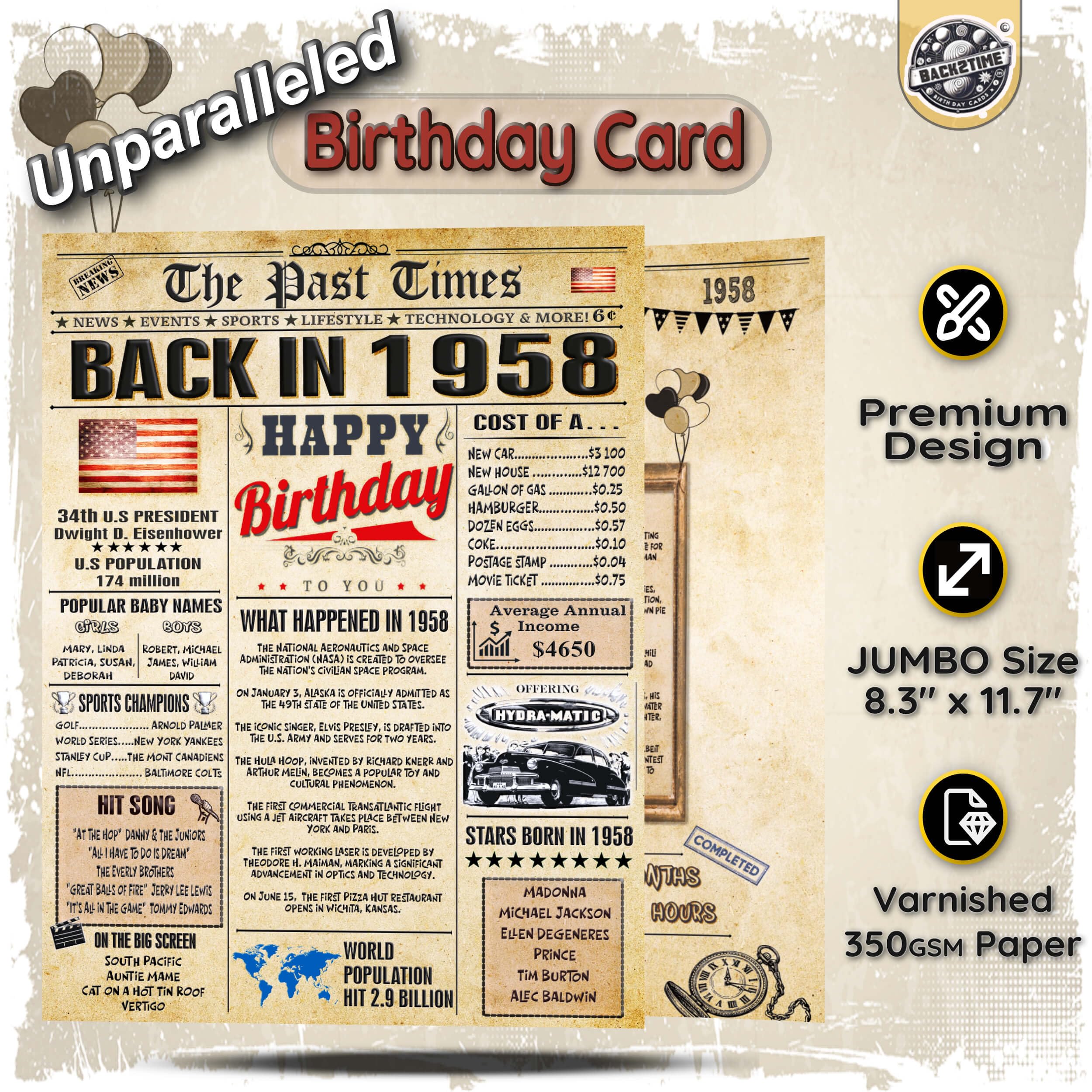 π FUNNY BIRTHDAY CARD + EXCLUSIVE ENVELOPE π Enjoy a beautifully printed Back in 1958 card that's entertaining to read, featuring a special bonus on the back with intriguing stories or lesser-known facts from that year. The interior offers space for personalized messages, designed with an aged appearance and elegant decorations to enhance the vintage feel. The included envelope boasts a unique design ideal for mom and adult born in 1958. Birthday Cards for Women, Birthday Cards for Men.