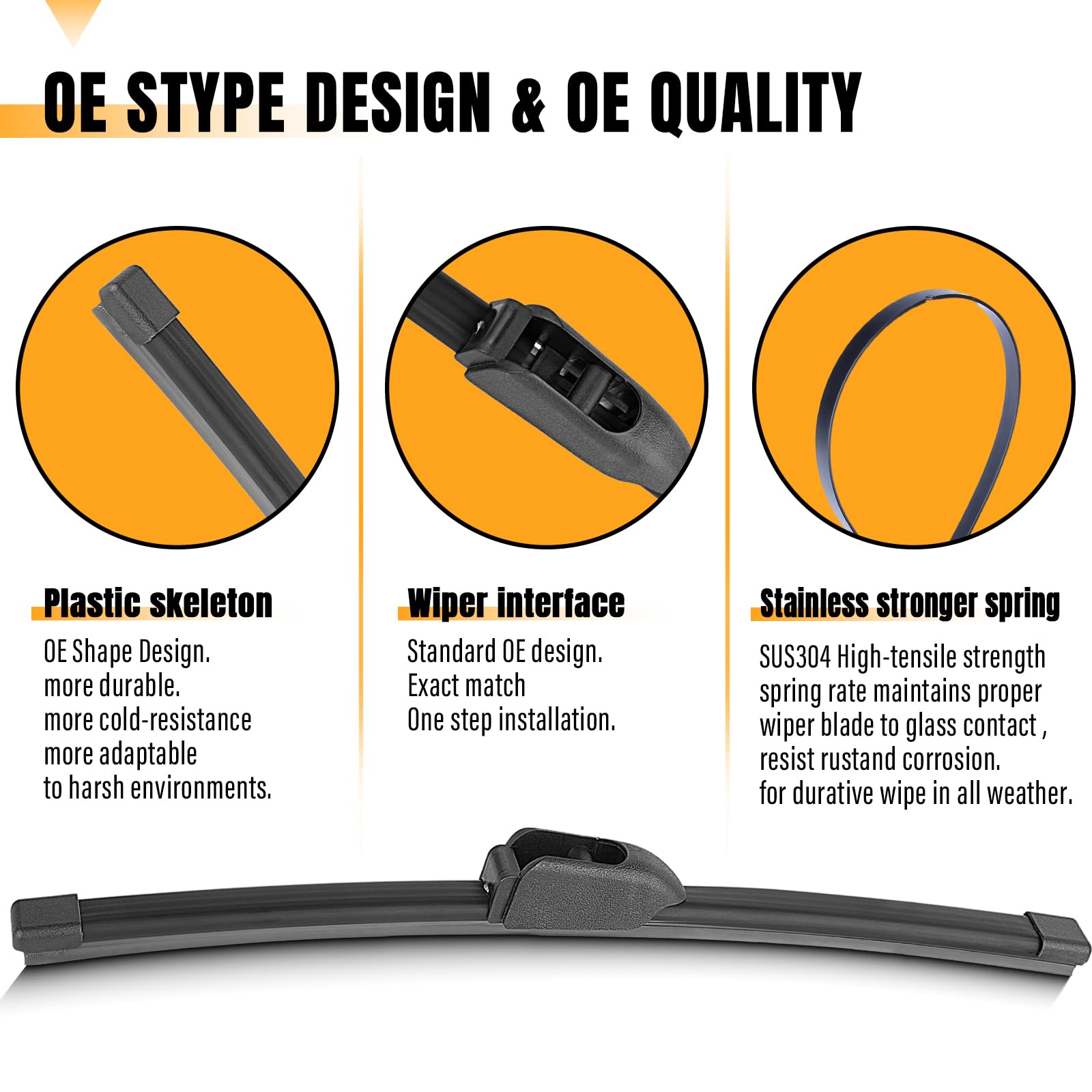 100% Brand New , All-weather and all-Season OEM quality windshield wiper blades ,Long life,Smooth engagement