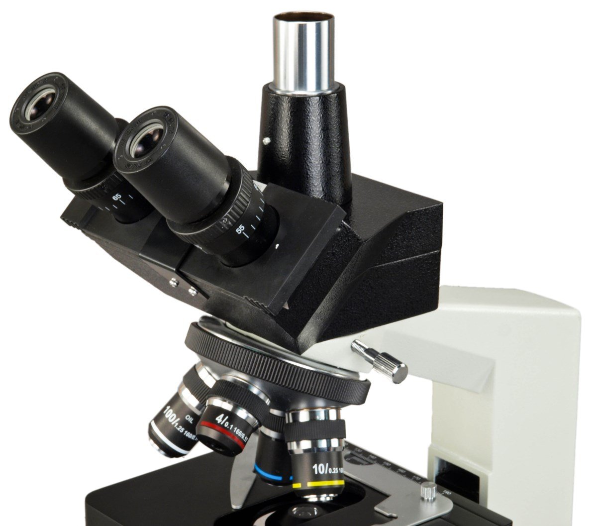This is a trinocular compound LED microscope with the power range from 40X to 1000X. The compound microscope features an optical system for simultaneously observing images through eyepieces and an adjustable trinocular port. The compound microscopy includes a 45 degree inclined 360 degree swiveling trinocular head, body frame, revolving quadruple nosepiece, a pair of widefield eyepieces WF10X/18, four DIN achromatic objectives: 4X, 10X, 40X (spring), 100X (spring,oil), large double layer mechanical stage, Abbe NA1.25 condenser with iris diaphragm and a LED illumination system. The LED lamp can be replaced by yourself. The trinocular port is easy to mount photo or video capability. You can add advanced accessories including darkfield condenser and phase contrast kit to upgrade your microscope. All lenses are made of high quality optical glass. The high resolution image in the field of view is crystal clear and will satisfy the demands of professionals. This trinocular microscopy is good for teaching, demonstration, clinical examination and research purpose.