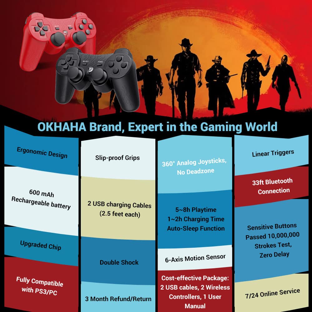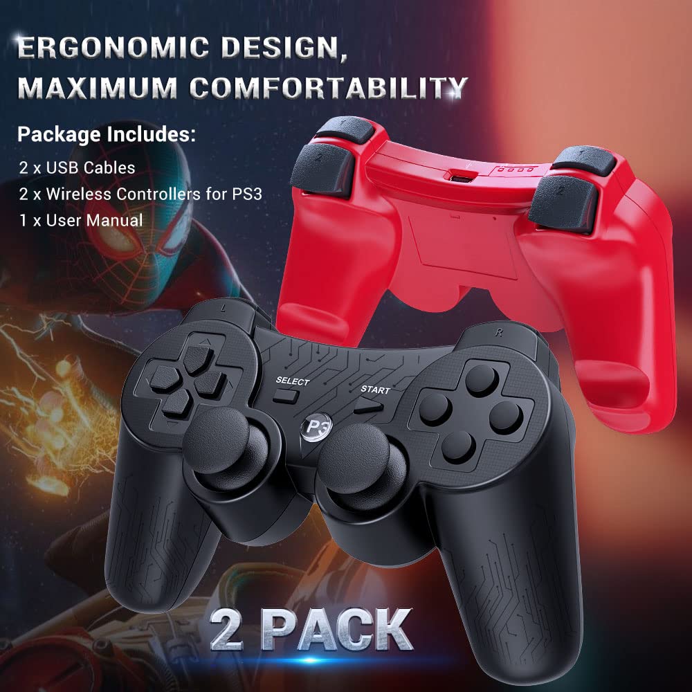 【Package Content & Lifetime Carefree After-sales Service】The delivery package includes 2 Controllers Wireless for PS3, 2 USB Charging Cables (2.5 feet), 1 User Manual; The wireless controllers for Sony PlayStation 3 offer a lifetime unconditional return and refund service.