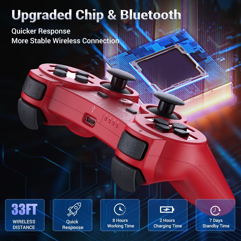 【Long Battery Life & Long Bluetooth Connection Distance】Remote for PS3 with a large battery capacity of 600mAh, providing 5~8h long playtime (auto-sleep function is provided for saving power).