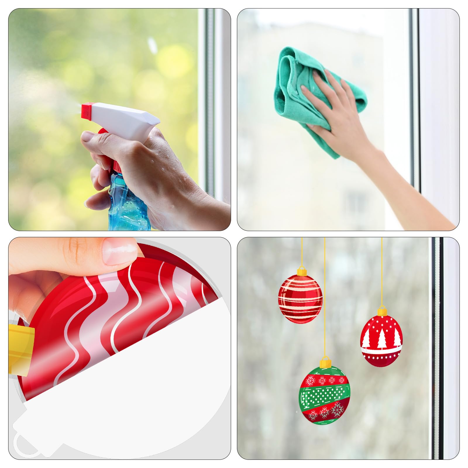 Easy to use: just peel off the thick gel clings from the plastic backing, then place it on any surface you want; if you want to rearrange it, just tear it off and move it. Before use, you can spray some water on the window, so that the window clings can be more firmly attached to the window.