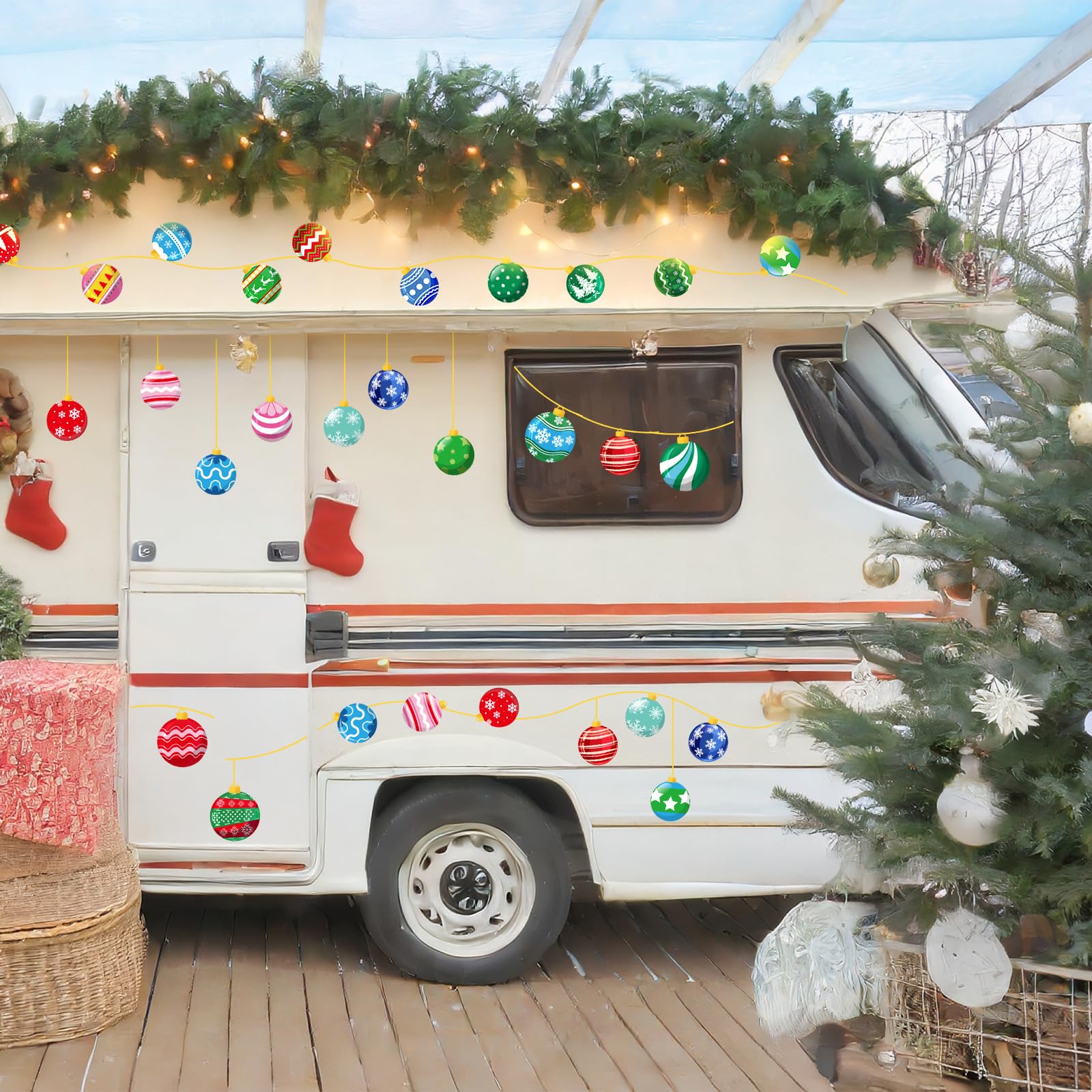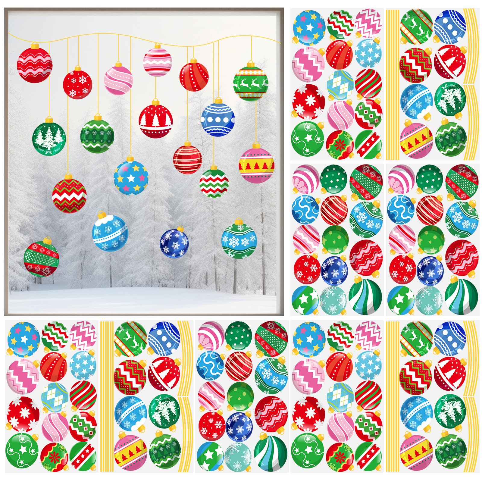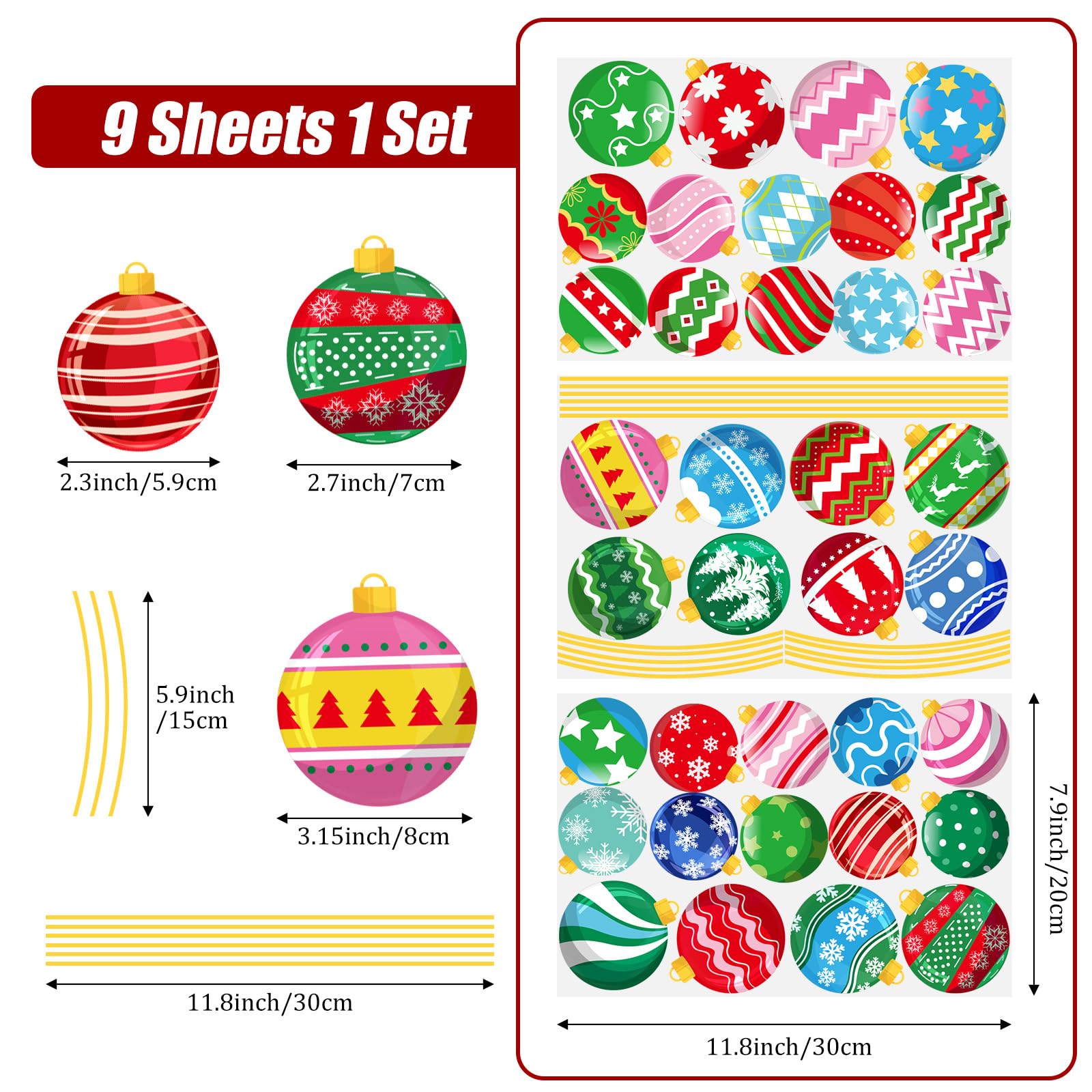 Unique designs: 9 sheets of Christmas winter decals for windows are designed with different patterns and colors, each sheet measures 20 x 30cm / 7.8 x 11.8inch, printed with snowball and wire, well match the Christmas season atmosphere.
