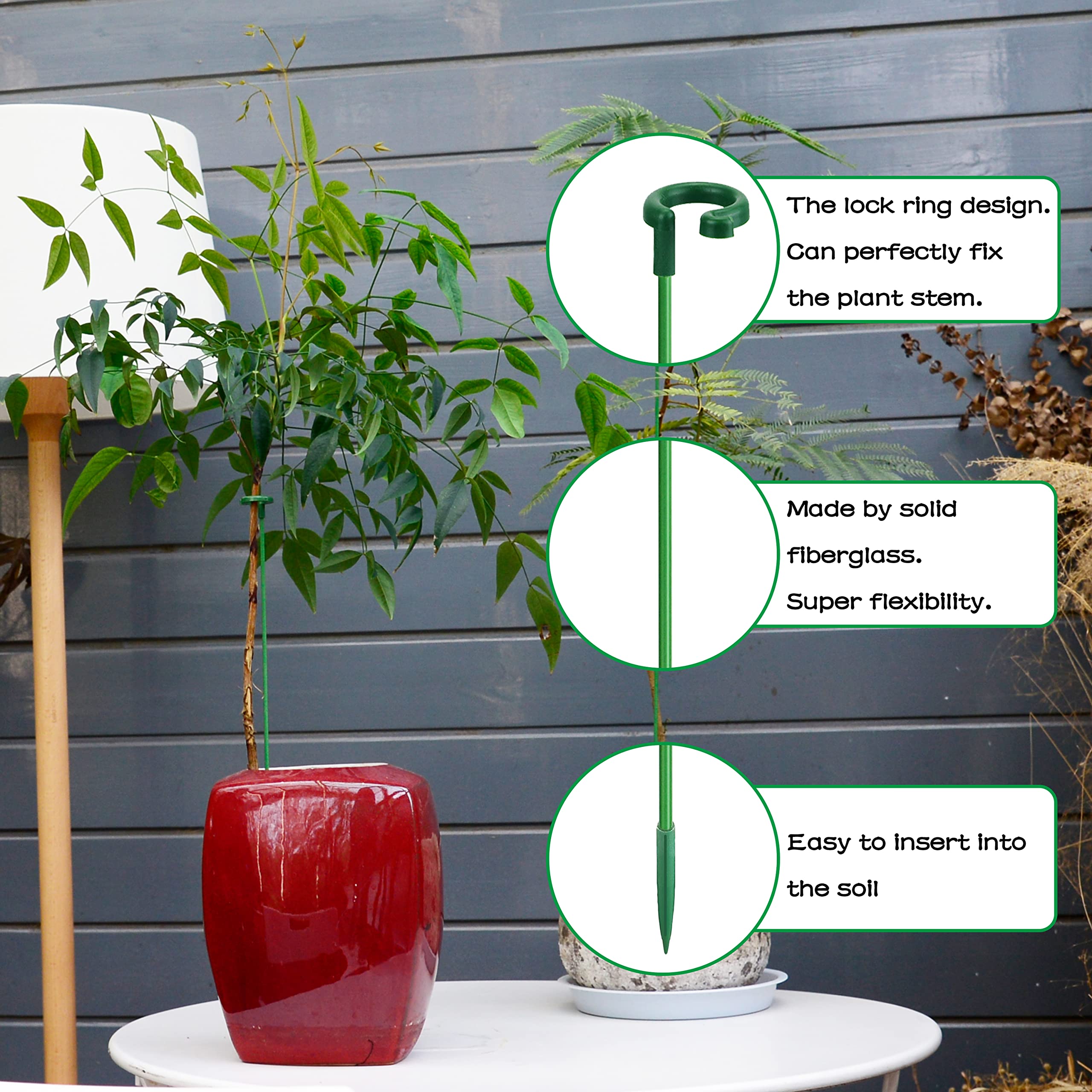 💐【BLEND IN PERFECTLY】- Its green appearance helps to blend into stem plants, nearly invisible, pretty natural. With the plant support sticks, each stem plant will keep upright and be individual, elegant.Just put the plant stem into the opening ring, find the proper position, and then insert the stake into the soil!