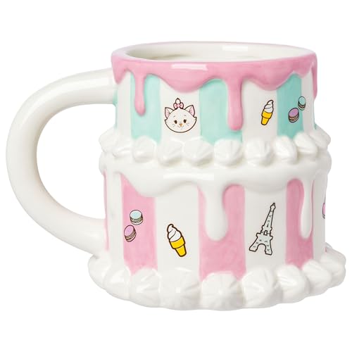 Add a touch of Parisian charm to your morning with this themed mug! Adorable ceramic mug is in the shape of a two tiered cake. Featured throughout the design is Marie alongside the Eiffel Tower, bows, music notes, ice cream cones, macaroons, and rainbows. Mug is decorated with blue and pink stripes. NOT microwave or dishwasher safe. HAND WASH ONLY. This 22 ounce mug is the ideal size for your morning tea, coffee, or beverage of choice. This mug can also be used as decoration to hold pens, pencils, or spare change. This sculpted mug features Marie in true Parisian fashion among a 3d sculpted cake. This elegant mug is perfect for birthdays, holidays, and other gift exchanges. Take a dive into the fictional world with Silver Buffalo! Silver Buffalo provides fans with official merchandise from their favorite characters. Working alongside licensors and brands, we create unique and imaginative products which are designed with great care and detail. Silver Buffalo aims to connect fans to their favorite cartoon characters, superheroes, movies, tv-series, and more. Celebrate your fandom!