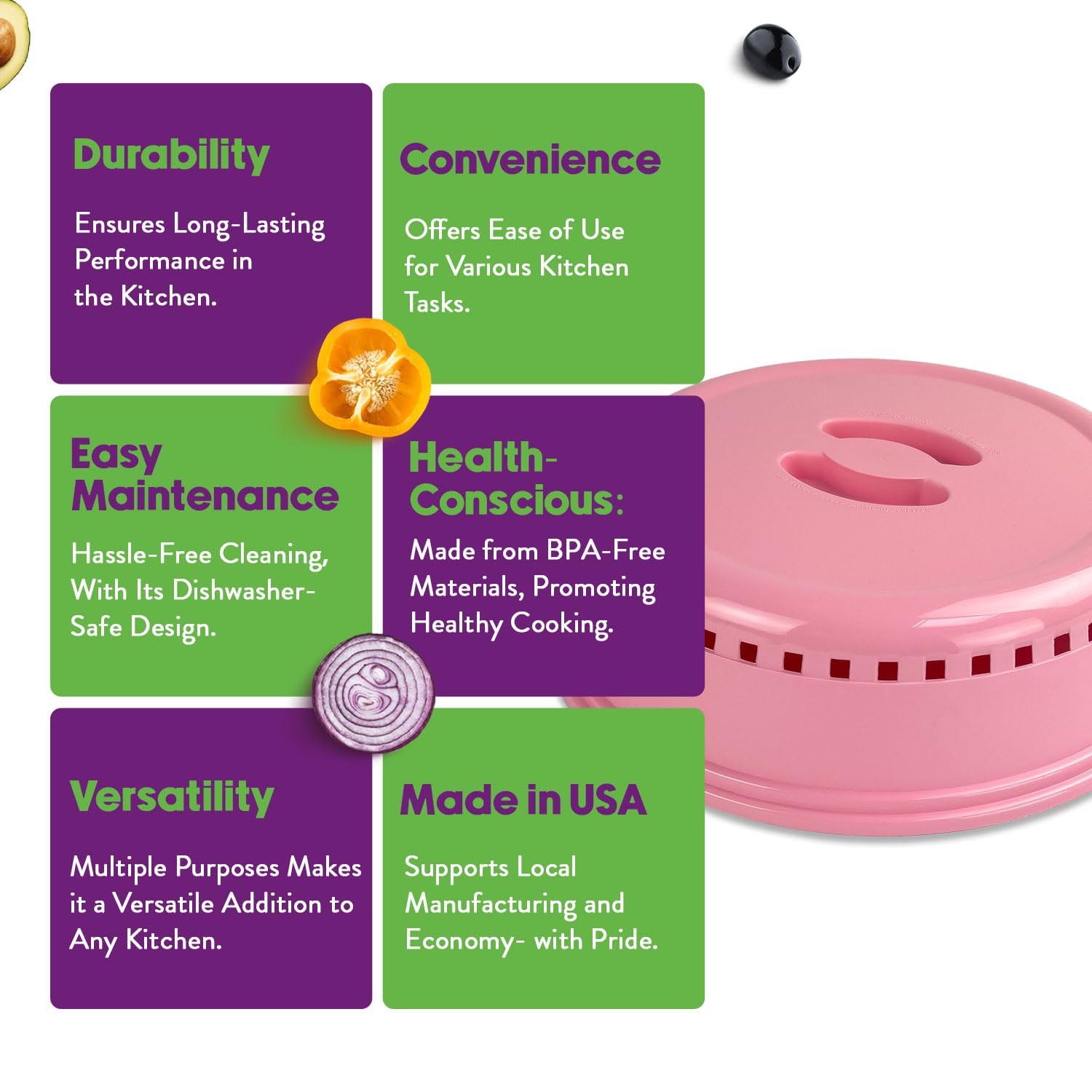 Enhanced Ventilation – Designed with superior ventilation to keep food from becoming soggy, Crisp microwave plate cover offers excellent ventilation, and ensures effective steam release and maintains a clean kitchen by preventing messy spills