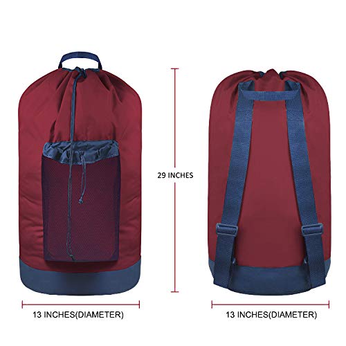LAUNDRY CAPACITY - Measures 13"(diameter) x 29", this size is big enough for holding 2-3 loads of laundry. Perfect capacity for laundromat use or family use. Note: Tight a knot over the drawstring cord lock to ensure nothing lost when the laundry bag is full.