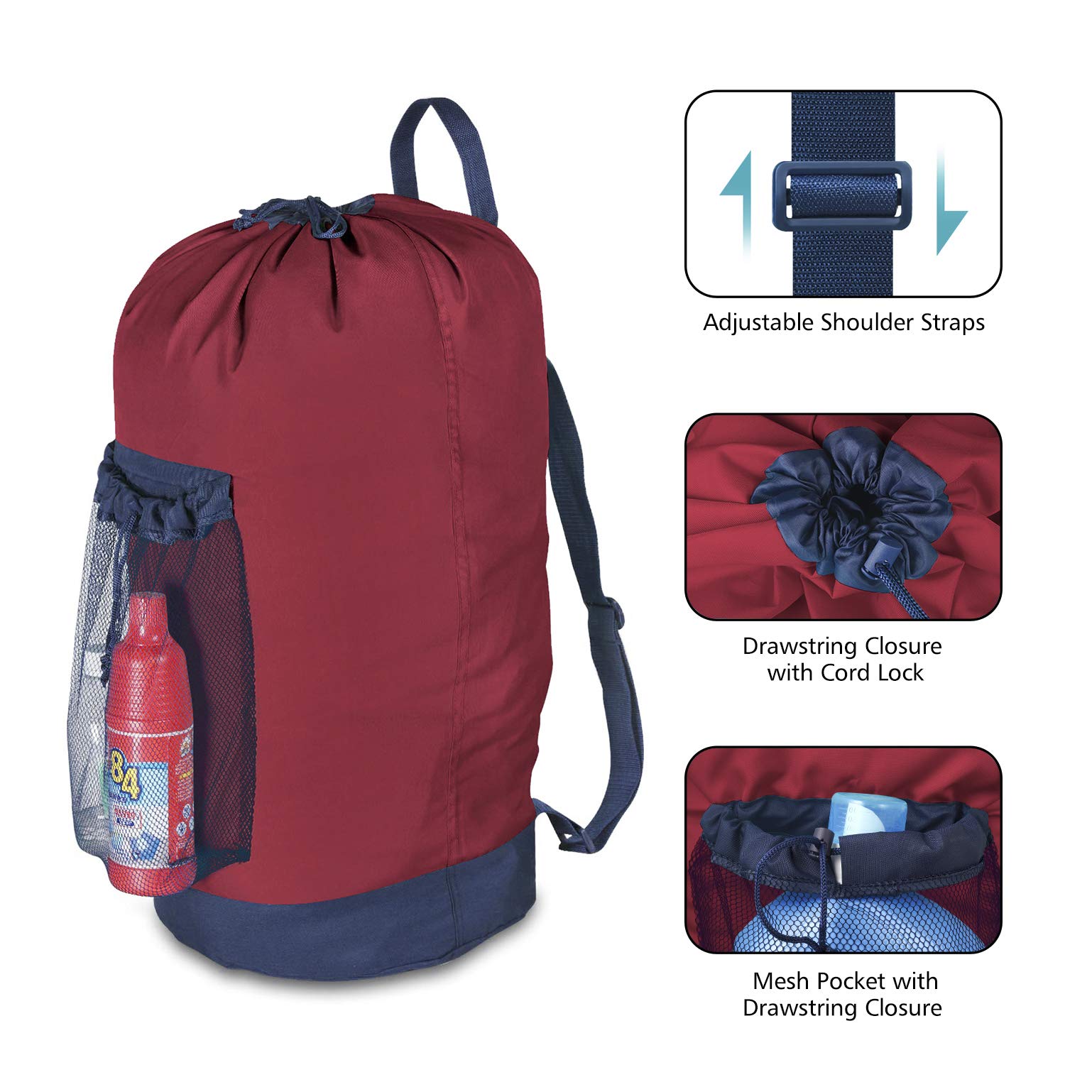 ADJUSTABLE AND WIDE SHOULDER STRAPS - Fully adjustable shoulder straps and torso length to fit a wide variety of people, which can be extended to 28.4" at the longest. With the width of 1.9", it provides maximum support to your shoulders, relieving your shoulders from heavy weight. More convenient and comfortable than holding a bulky laundry basket back and forth between home and laundromat.