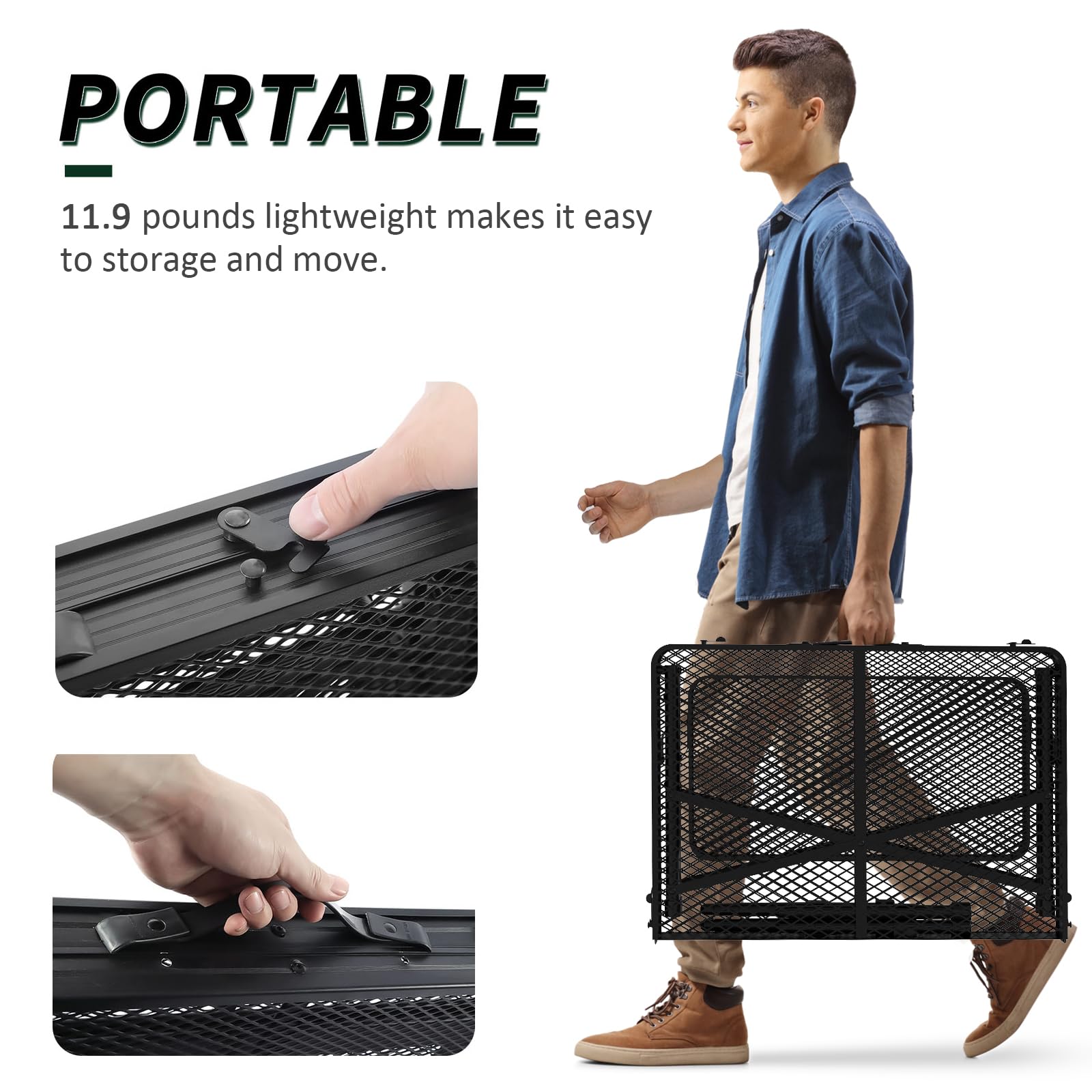 Without Tool Assembly: Experience easy assembly with our metal folding camp table. Simply unfold and you're ready to enjoy outdoor activities in seconds, no tools required.The folded size are 23.6"L x 17.7"W x 2"H and the weight only 11.9 lbs.