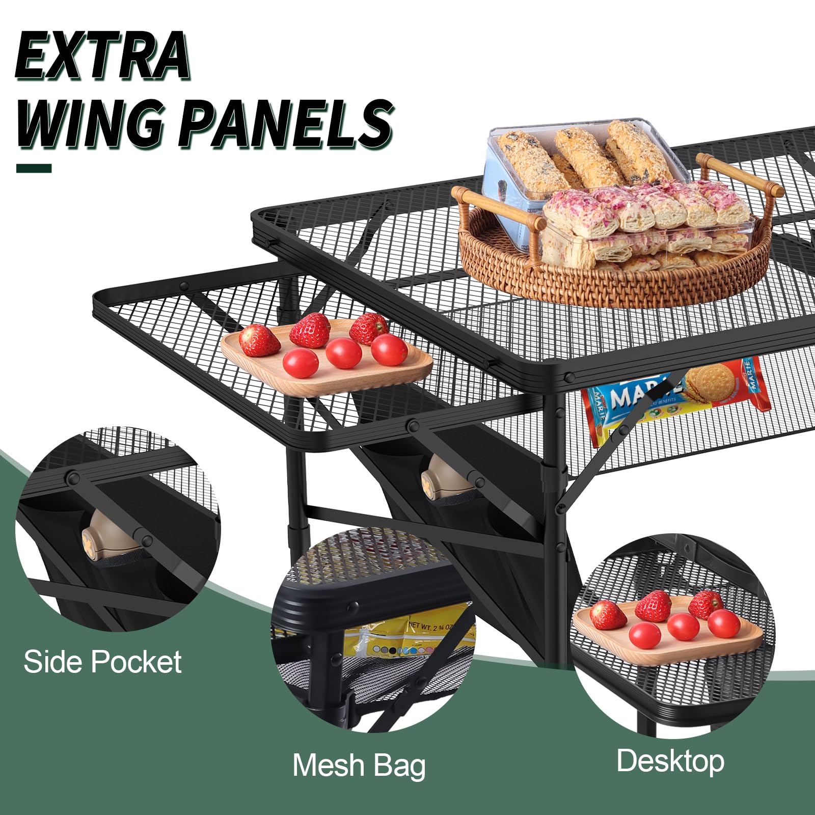Enhanced Capacity: With a detachable mesh layer and side pocket, the WildFinder folding table holds all your outdoor activity essentials. Built-in cup holders ensure no spills, offering a stress-free outdoor experience.