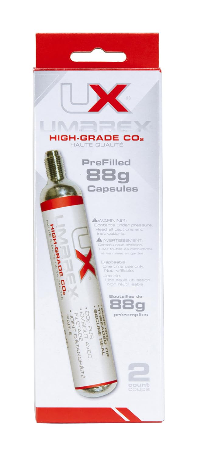 CO2 quality is critically important for the health of your air gun. Without clean, reliable power, air guns can break down. Valves clog. O-rings and seals deteriorate. While manufacturers meet standards of size and weight, they aren’t held to exacting standards for cleanliness. Even the designs of the seals at the top can vary from one maker to the next, and, if a neck seal is out-of-spec, it can damage a gun’s puncture assembly. Ensure a lifetime of performance with this clean CO2 from Umarex. Umarex makes both 88 gram capsules and 12 gram capsules. They are all tested and proven clean.