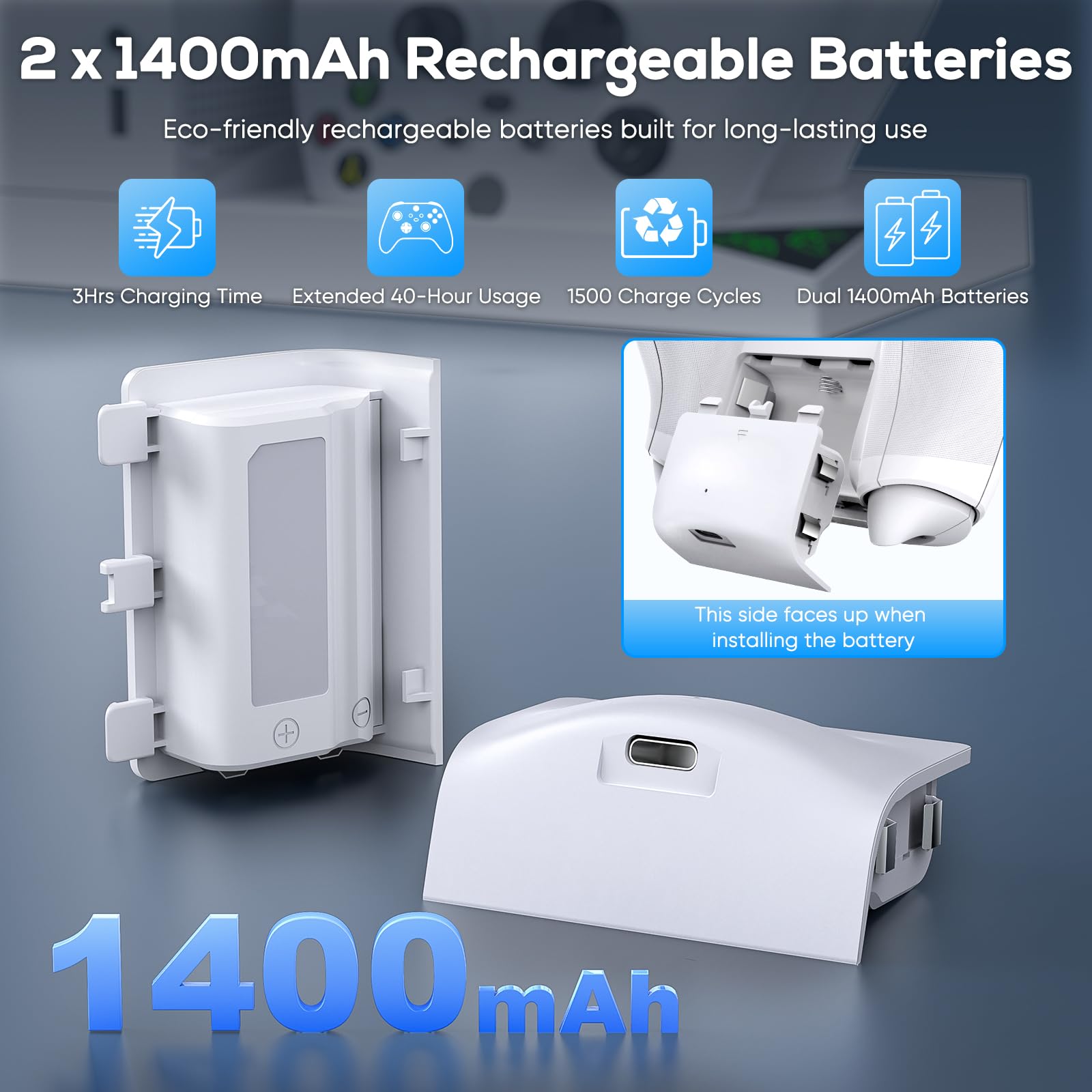 Convenient Charging Design: With built-in dual charger station for Xbox Series S controller with 2x 1400mAH rechargeable battery packs, it supports 24 hours of standby and only takes 3 hours to charge. This design enables players to quickly resume the game without frequently replacing batteries. Immerse yourself in xbox series s games