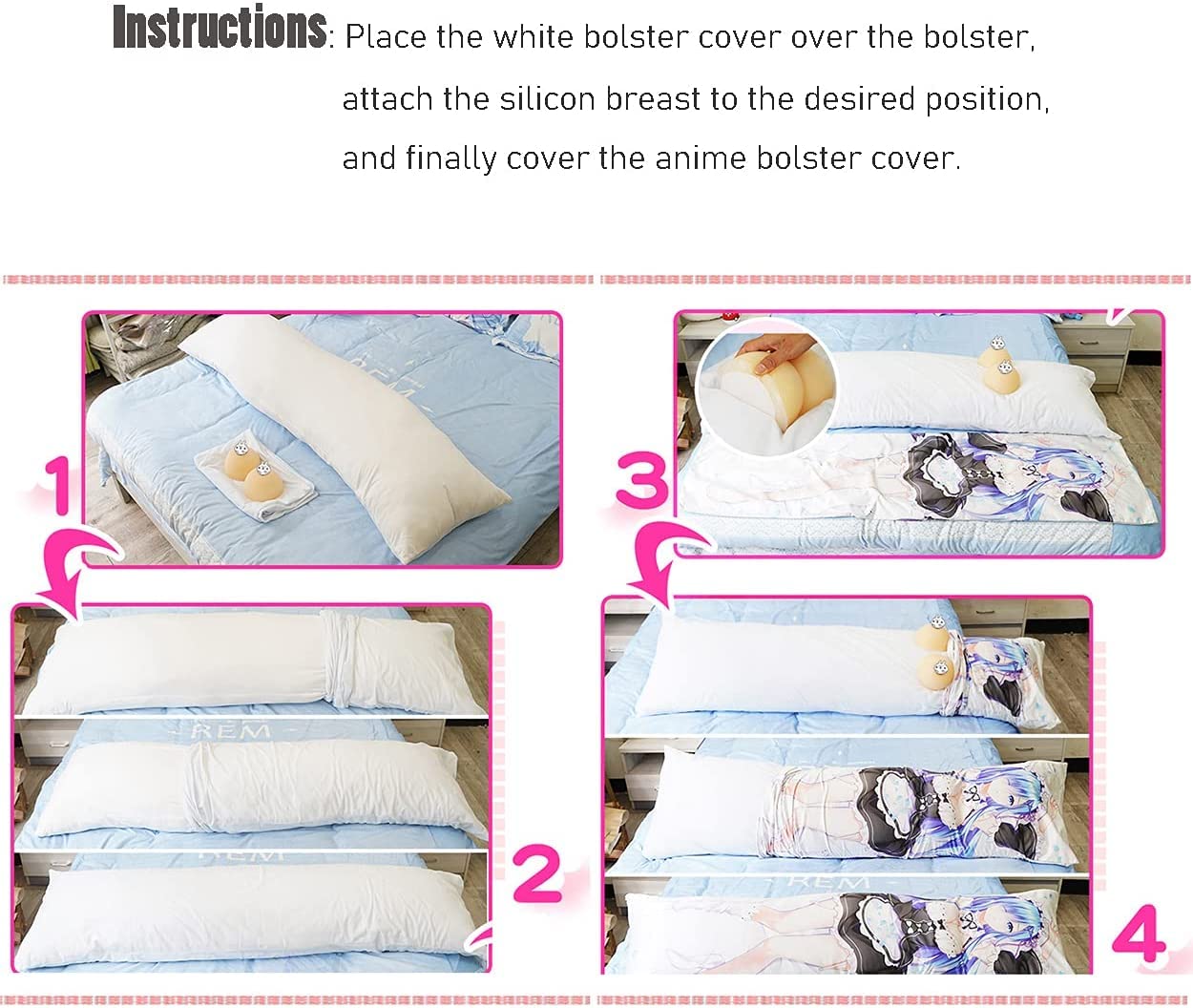 ☛ Instructions: Place the white bolster cover over the bolster, attach the silicon breast to the desired position, and finally cover the anime bolster cover.