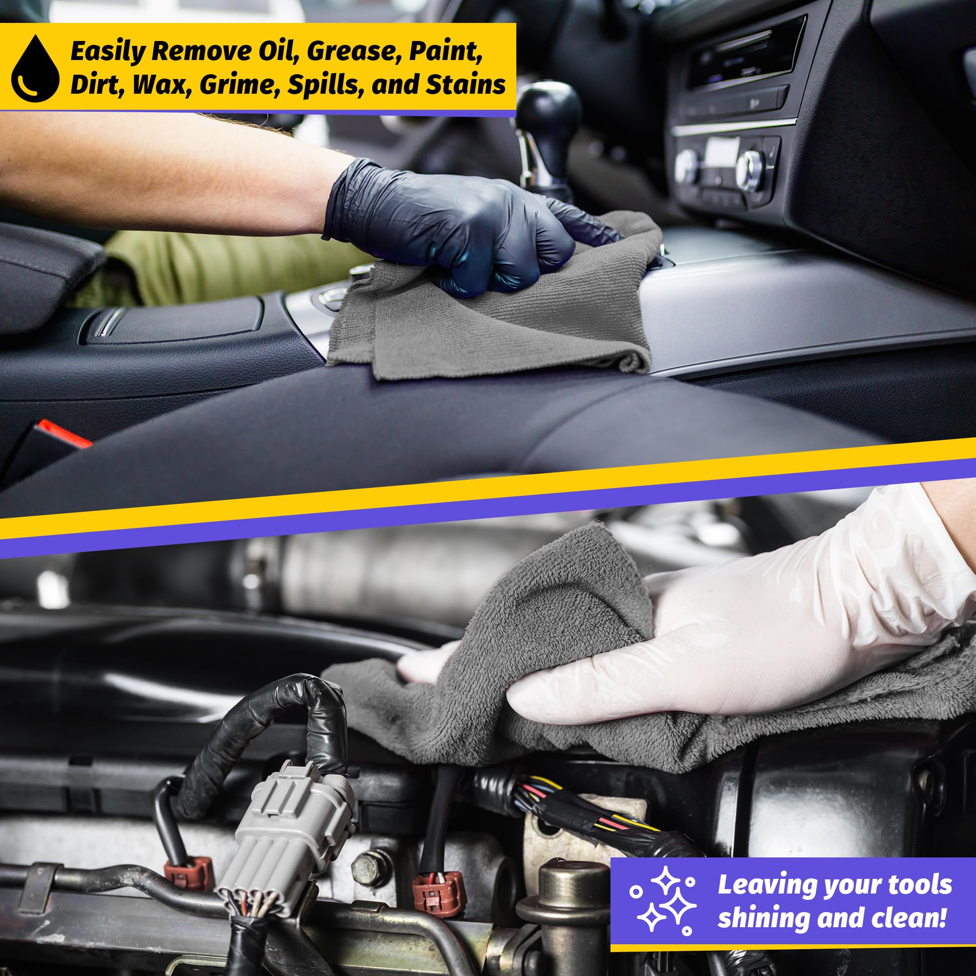 STURDY & REUSABLE & ABSORBENT RAGS: These microfiber rags are machine washable, long-lasting, and reusable, a great alternative to paper towels. The microfiber fabric construction provides extreme durability, which prevents towels from wrinkling, stretching, or shrinking after regular usage. They can be rinsed and used many times before they go into the wash. Ideal for any workshop that regularly deals with spills like water, grease, or grime.