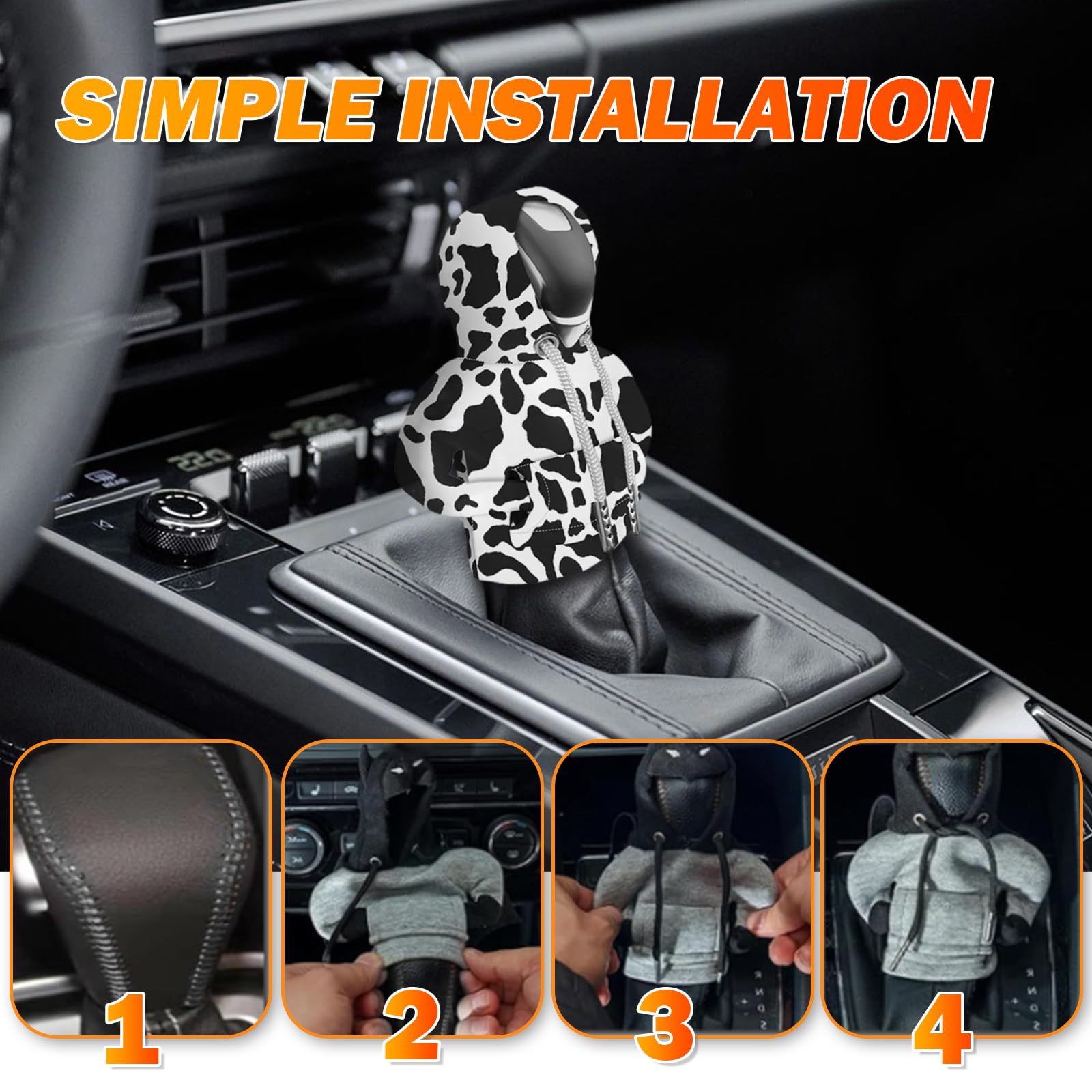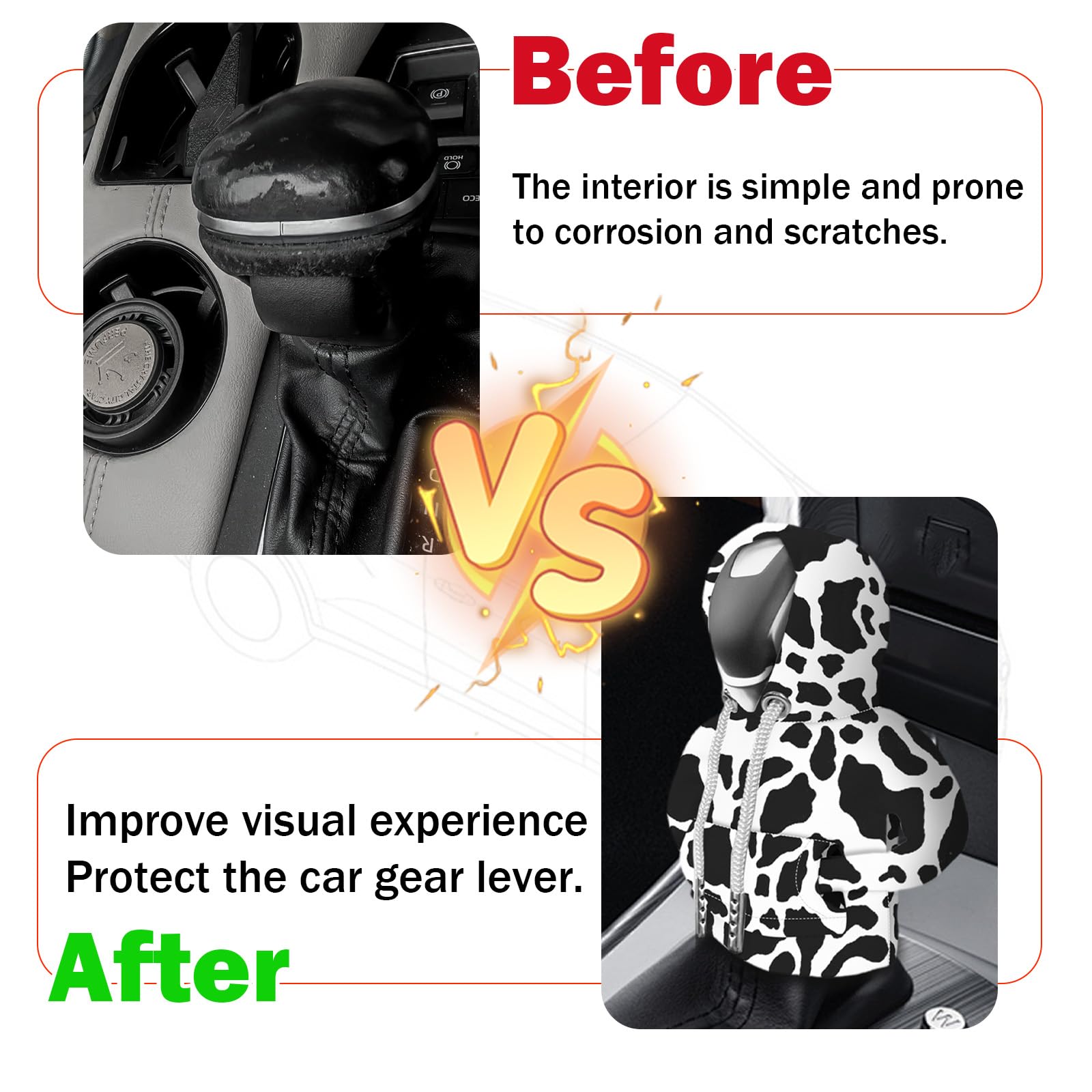 FASHIONABLE DESIGN: SuperKaKa Car Shift Head Cover is designed with black and white cow pattern, adding fun and unique style to your car interior, making driving more fun