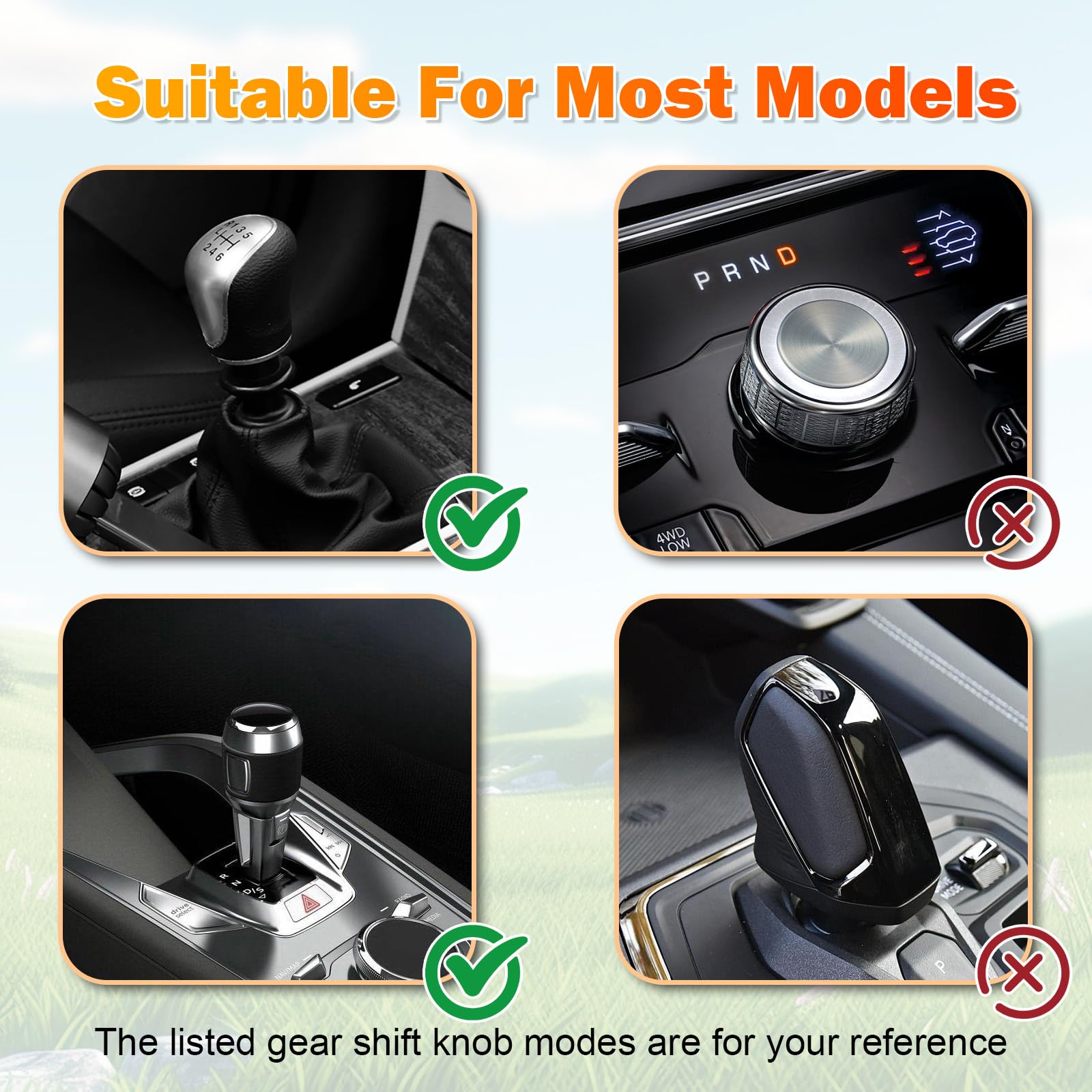 UNIVERSAL SIZE, EASY INSTALLATION: Designed to fit most models of shifter head, easy to install, no tools needed, can be replaced in seconds. It is a practical and thoughtful car interior accessory