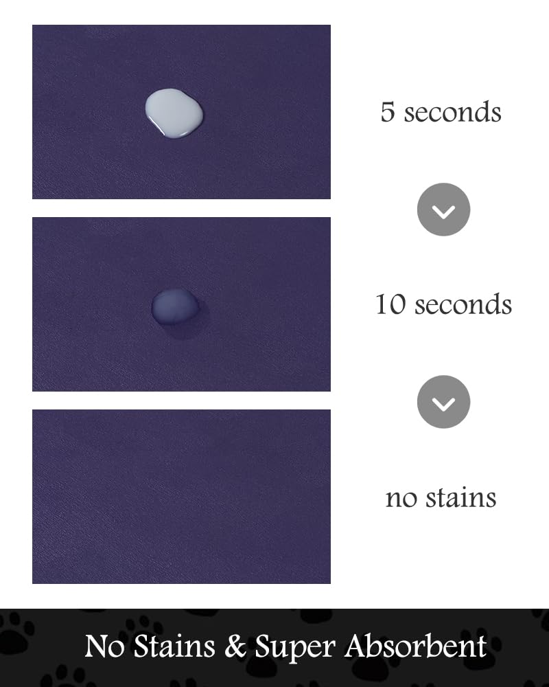 Super Absorbent & Durable: Perfect pet supplies.This pet food mat can prevent liquid from overflowing. Super absorbent and quick-drying ability to avoid wetting pet paws even for messy drinkers. Sturdy dog & cat food bowl mat cannot be torn easily and avoid eating by mistake. Keep the pet's eating environment tidy and clean.