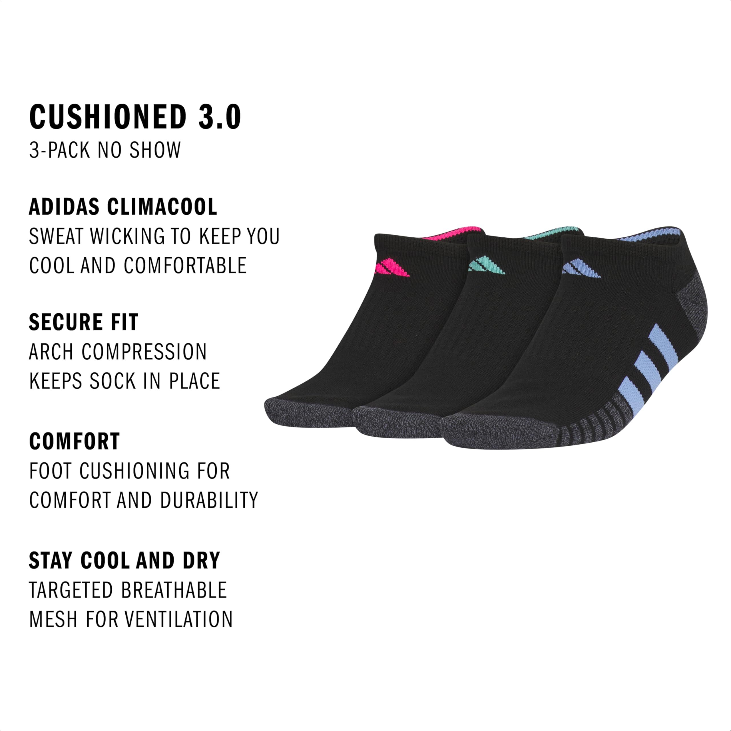 Description FEEL COOL AND DRY WITH ADIDAS CLIMACOOL Supporting your body's cooling system through the power of advanced materials. Your sweat is wicked away to keep you comfortable. Arch compression secures foot and offers extra support. Cushioned foot for comfort and durability. Targeted mesh ventilation for added breathability