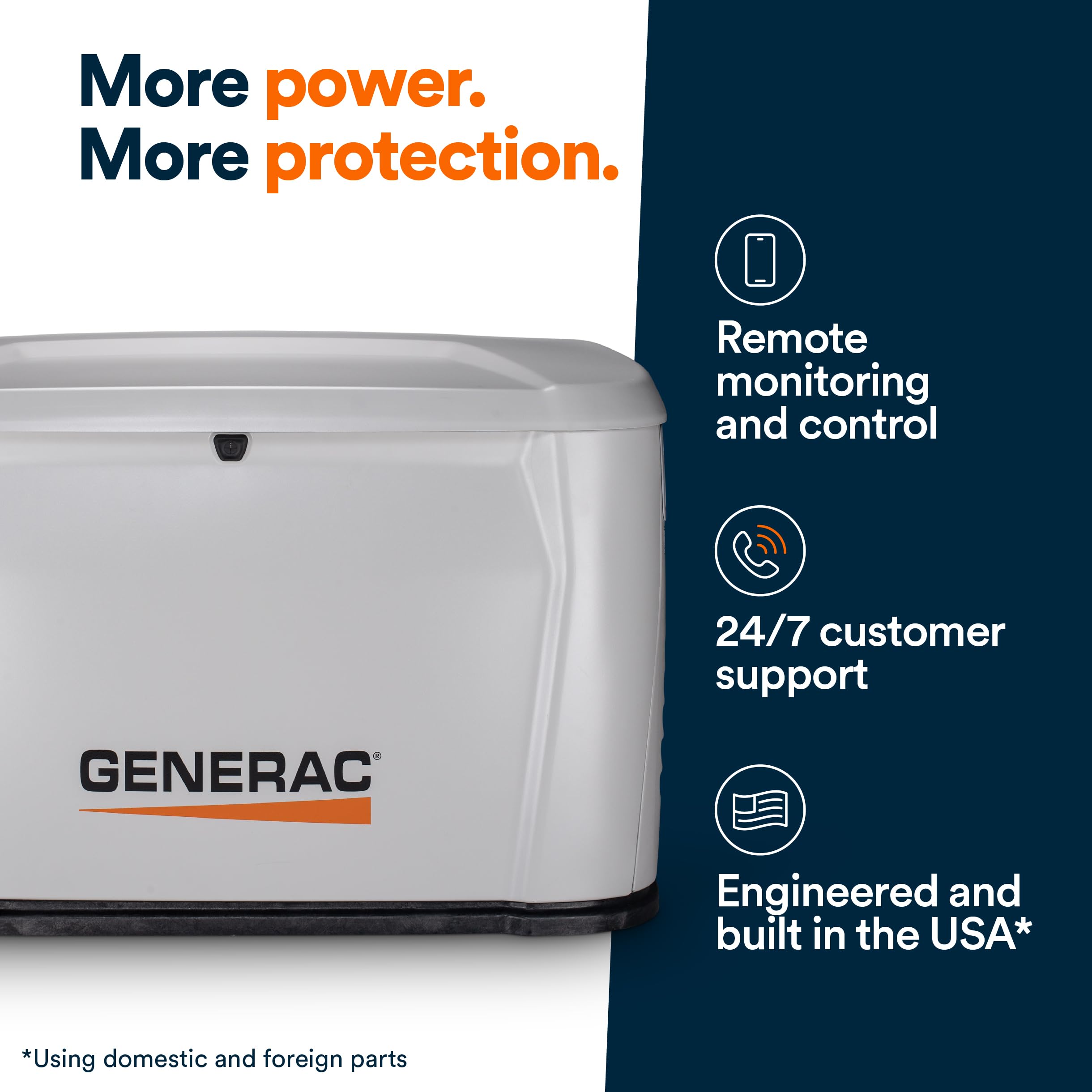Remote Monitoring & Control: Built-in Cellular Connectivity allows you to monitor performance and control your generator with Mobile Link app whether you're home or away. Provides real-time updates and maintenance alerts right on your device.* *Requires Mobile Link premium subscription