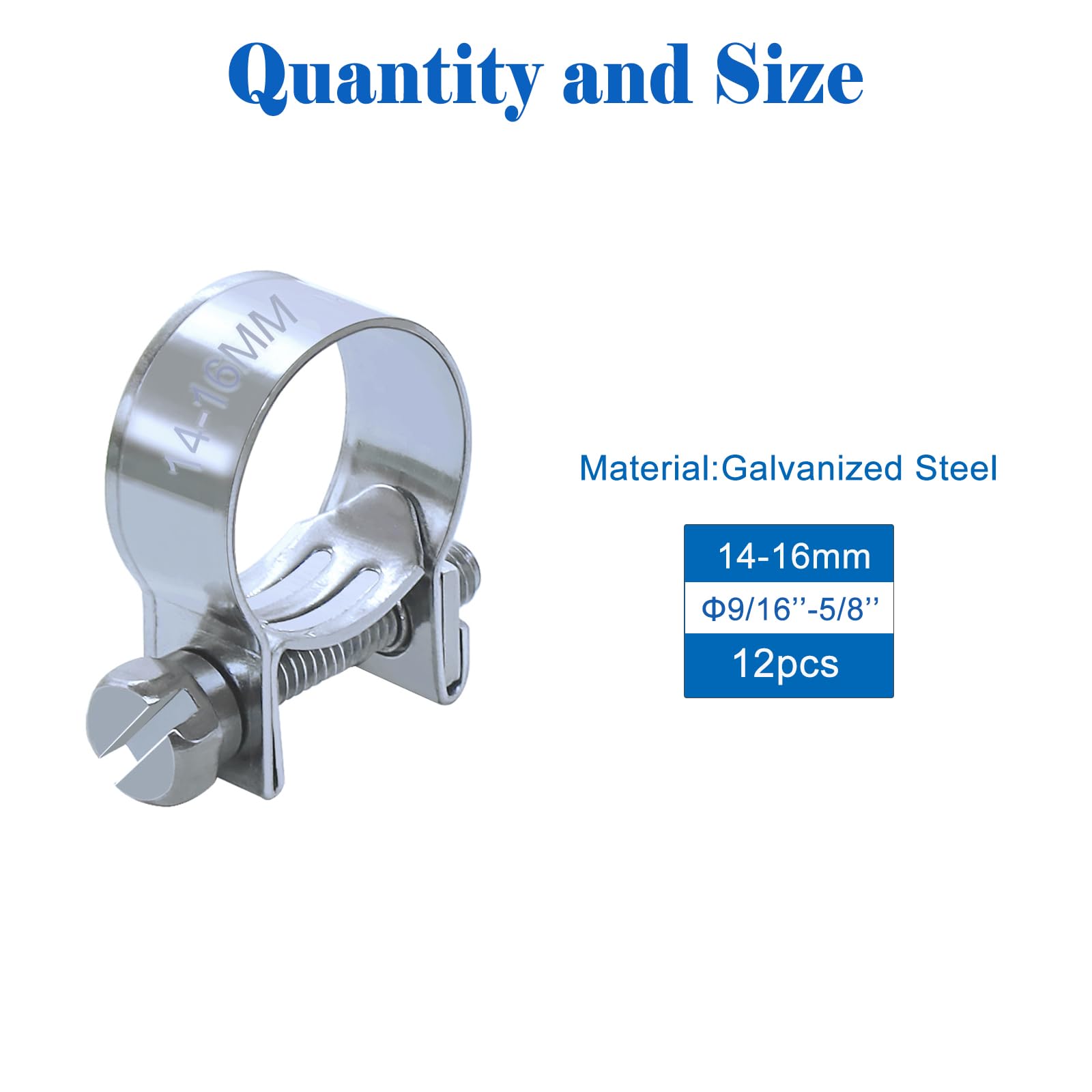 Hose Clamp Size:12Pcs 9/16" - 5/8" Dia Mini Fuel Injection Clamps.